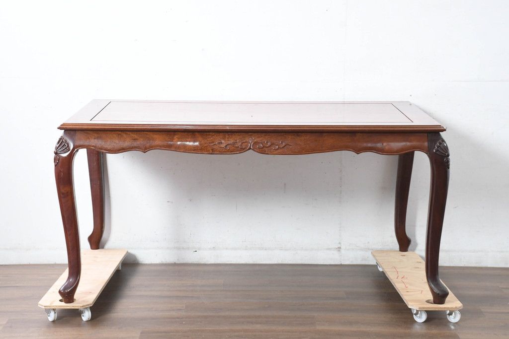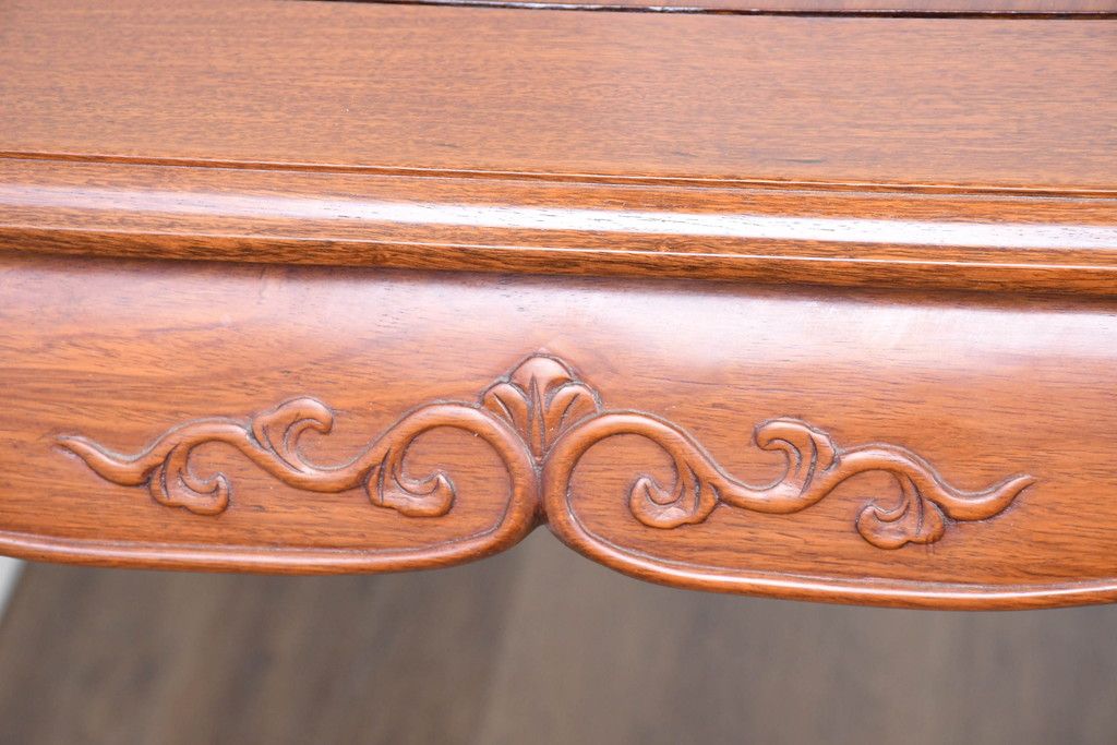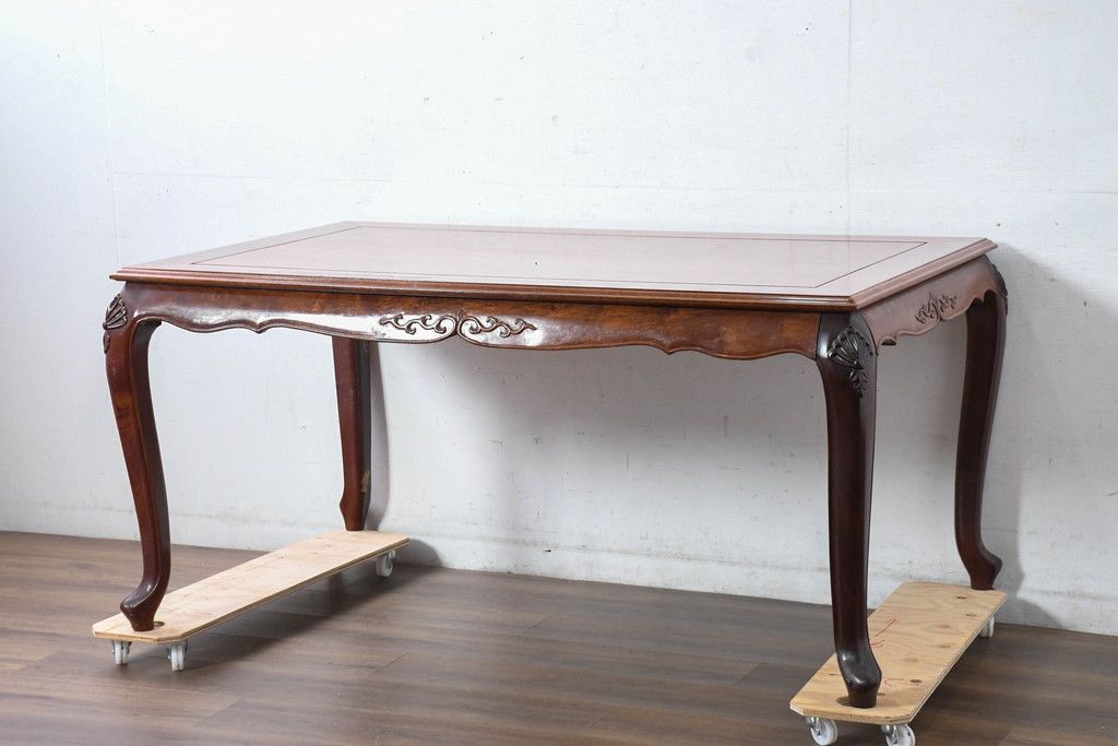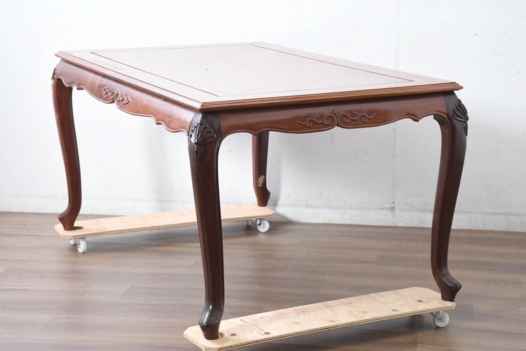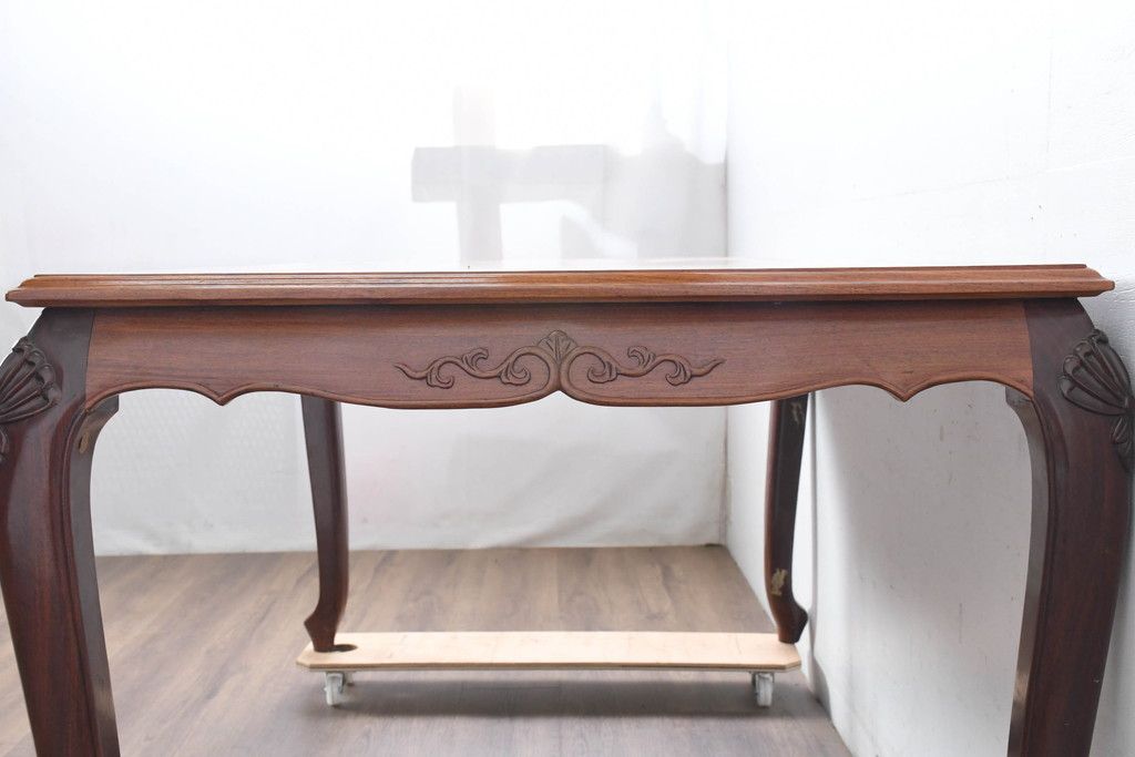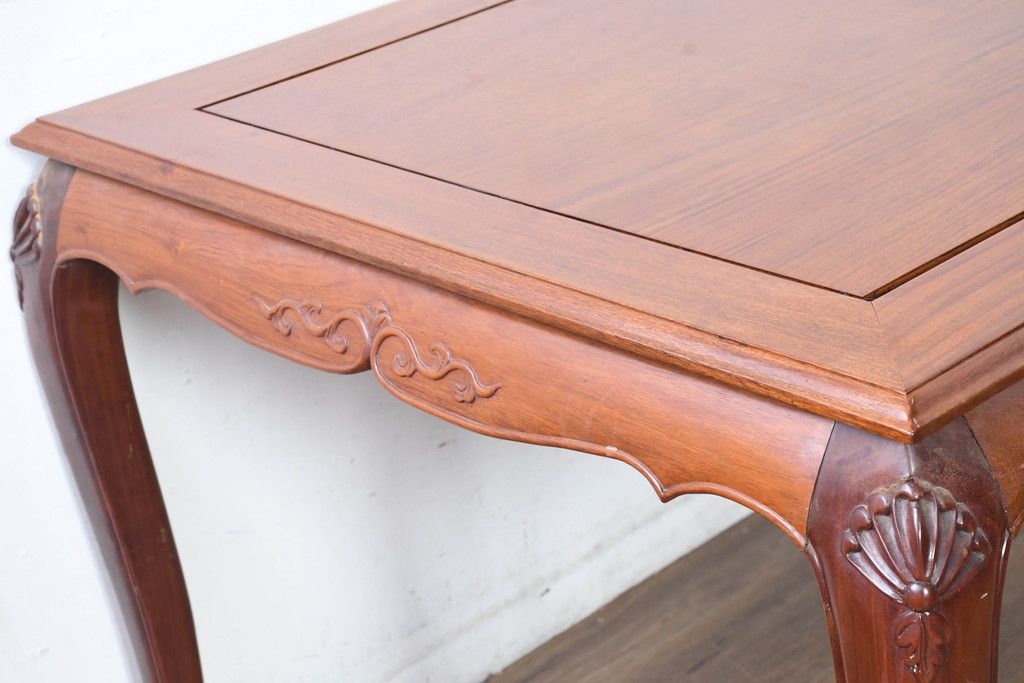 中古 希少デザイン 花梨(カリン)材 猫脚の優美な曲線と彫刻が目を引く唐木ダイニングテーブル(4人掛け、6人掛け、食卓)(R-084418)です。