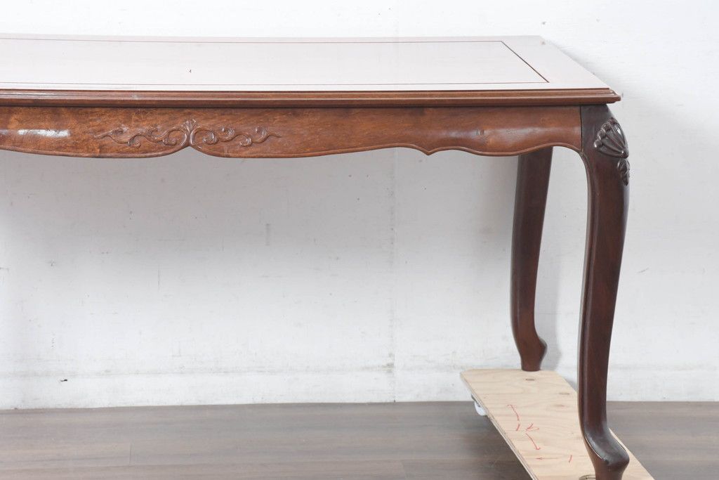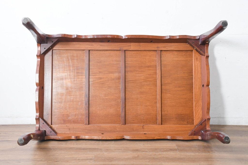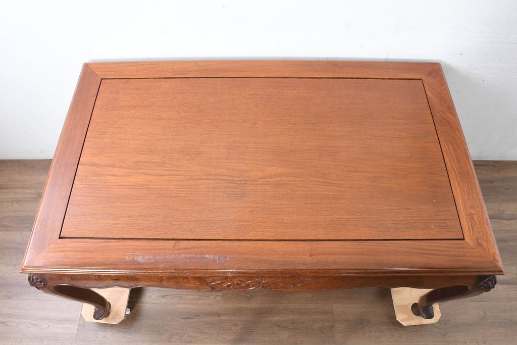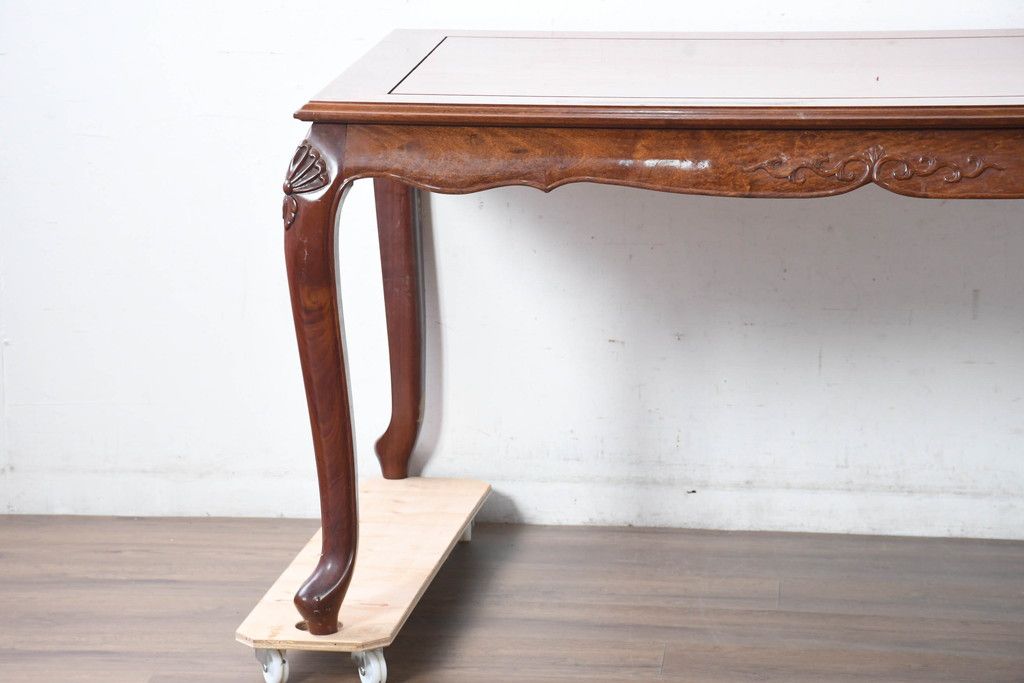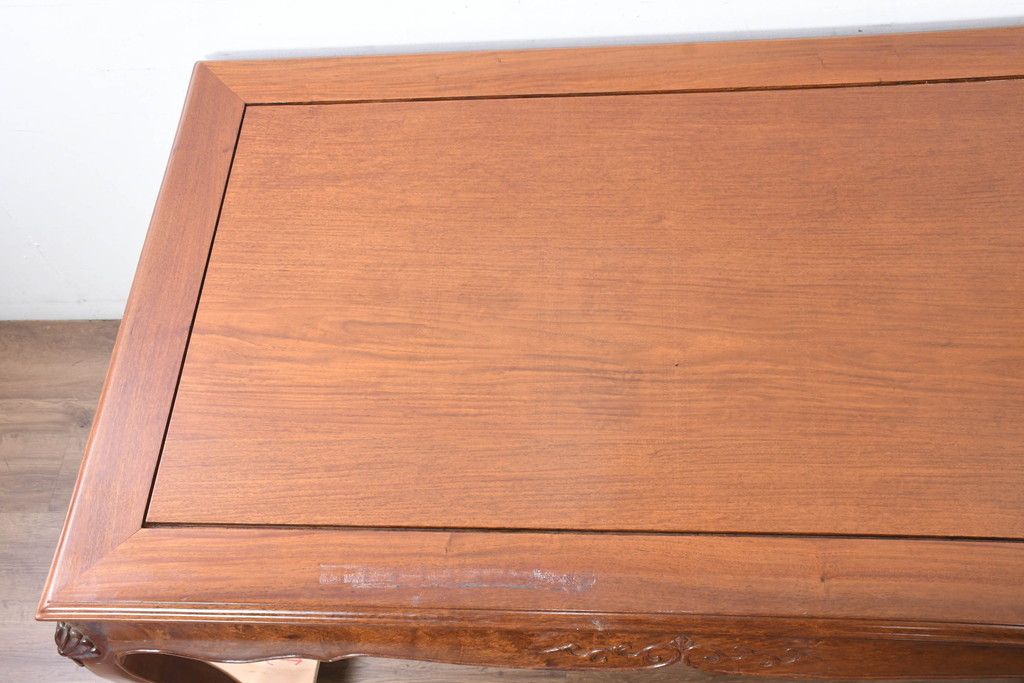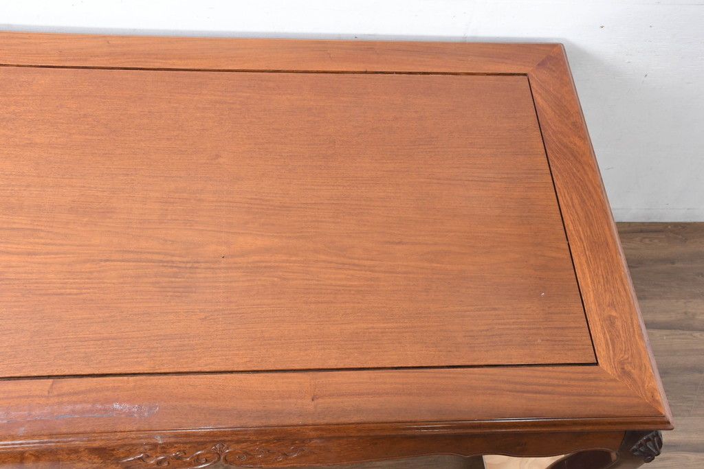 中古 希少デザイン 花梨(カリン)材 猫脚の優美な曲線と彫刻が目を引く唐木ダイニングテーブル(4人掛け、6人掛け、食卓)(R-084418)