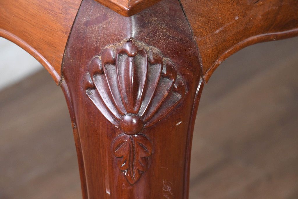 艶やかな木肌と彫刻、優雅な猫脚が