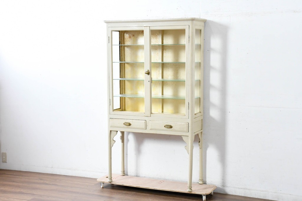 和製アンティーク 三面ガラス お気に入りを可愛らしく収納できるケビントガラスケース (R-084419)