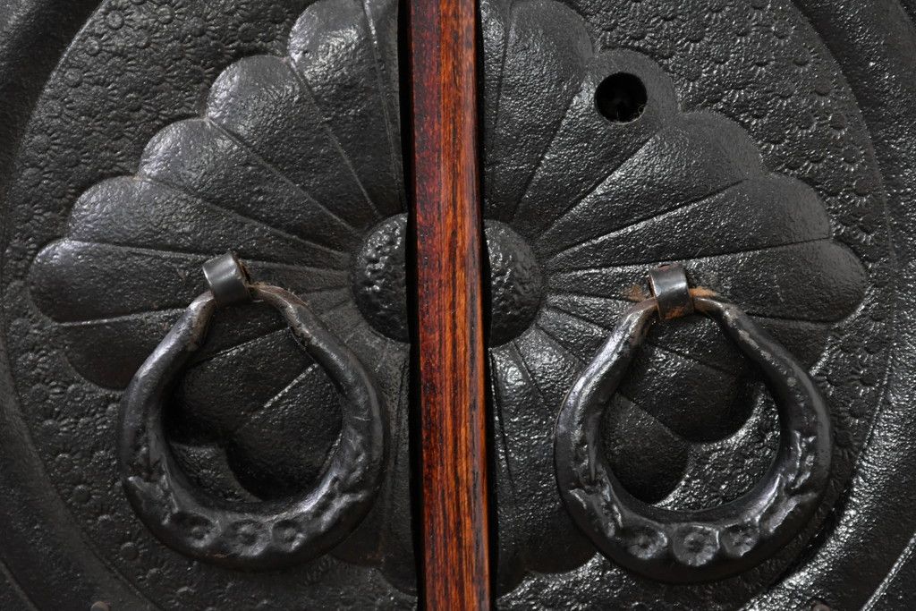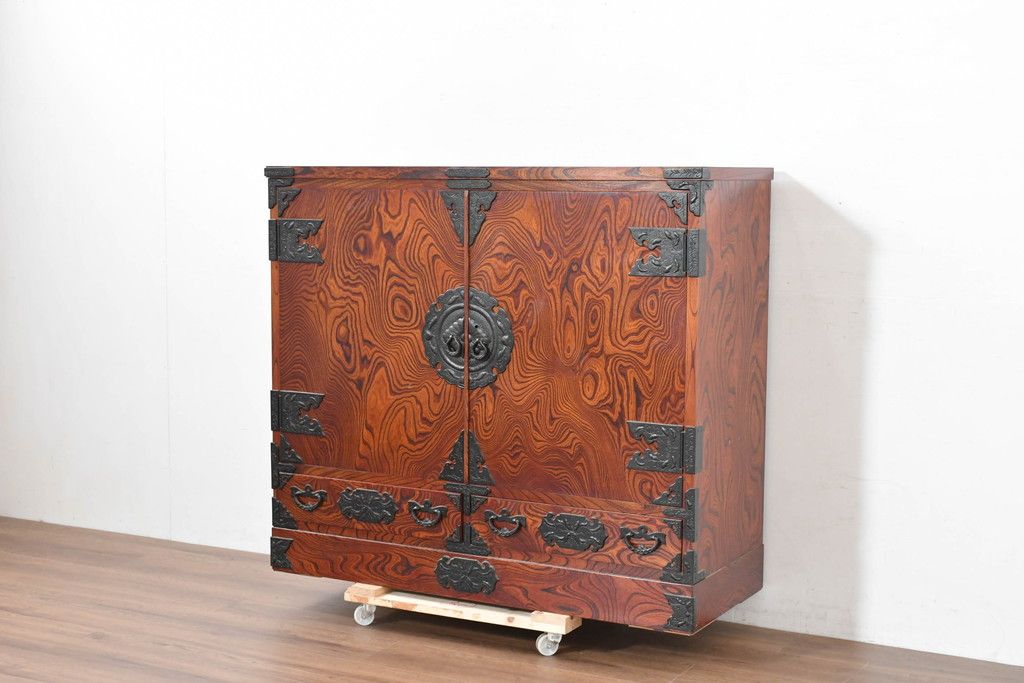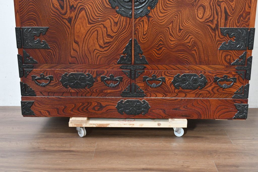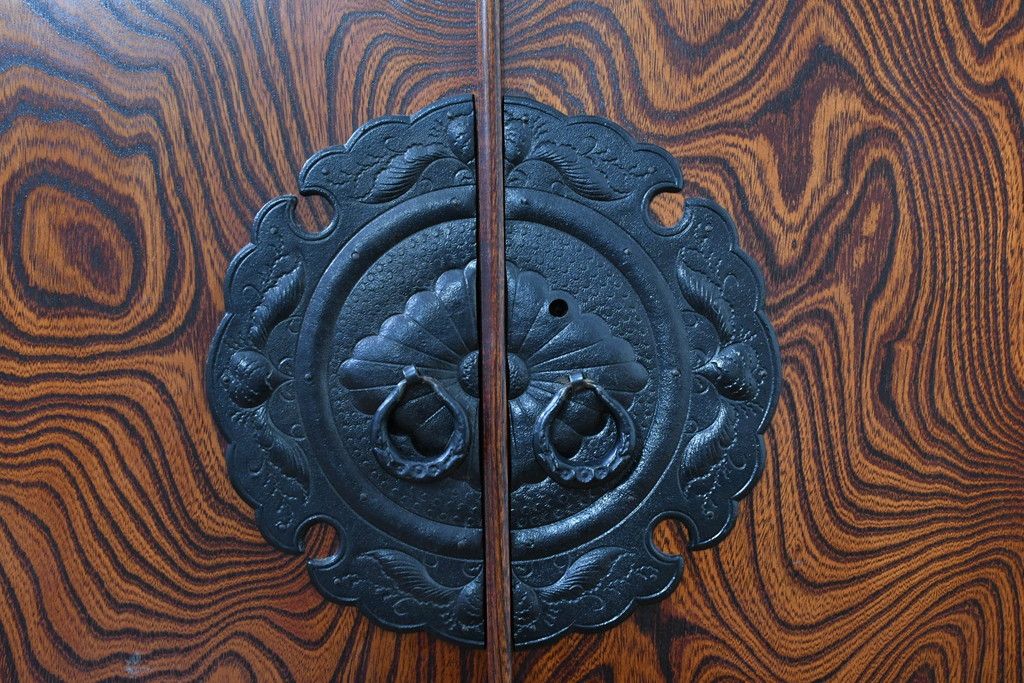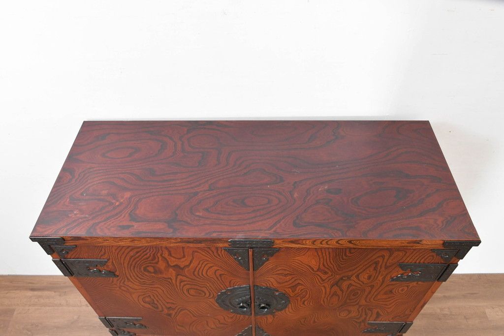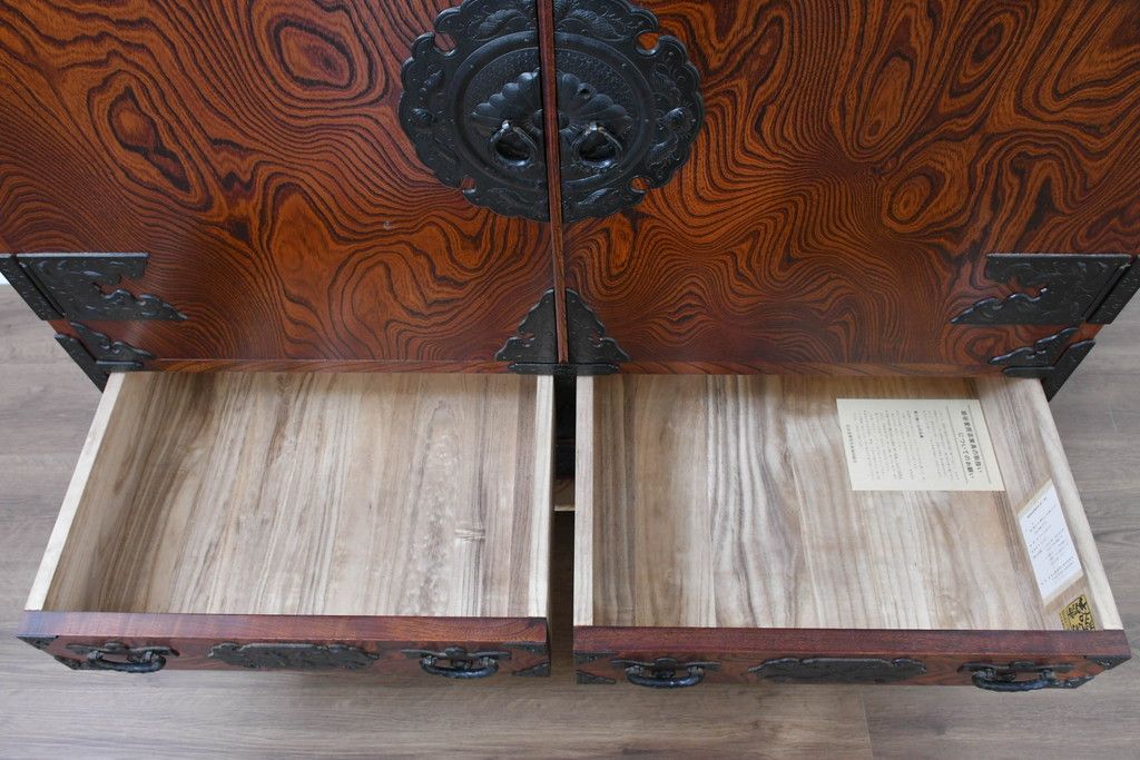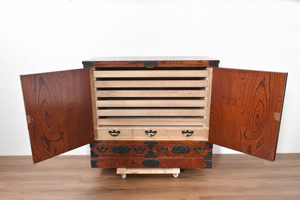 民芸家具 > 中古 美品 岩谷堂箪笥 くっきりとした杢目と立派な金具が全体を引き締め高級感を放つ観音扉付き着物箪笥(引き出し、和タンス、洋服箪笥、収納箪笥、観音箪笥、衣装たんす)(R-084425)