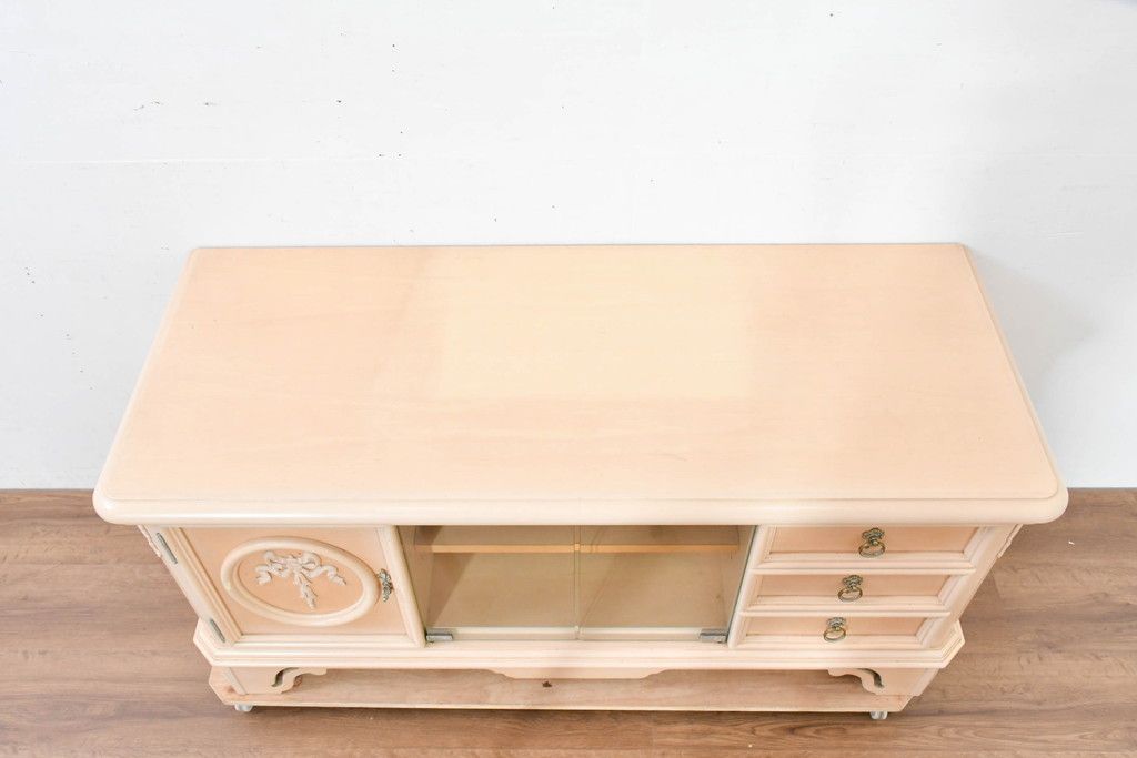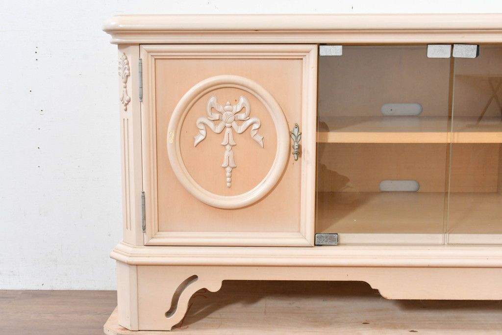 キャビネット・戸棚> テレビ台・ローボード > 中古 希少な廃番品! LYNN・HOLLYN(リン・ホーリン) 繊細でエレガントな彫刻装飾が目を引くテレビボード(テレビ台、TVボード、リビングボード、ローボード、サイドボード)(R-084427)