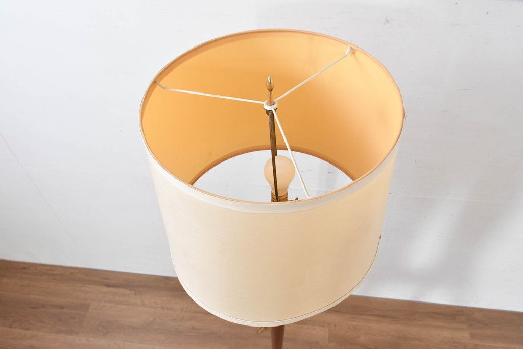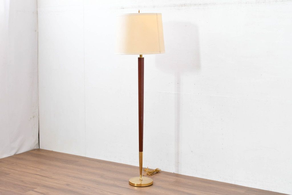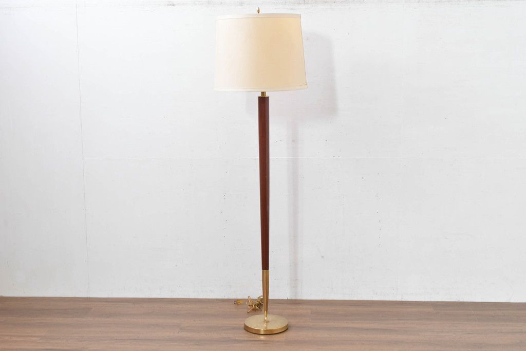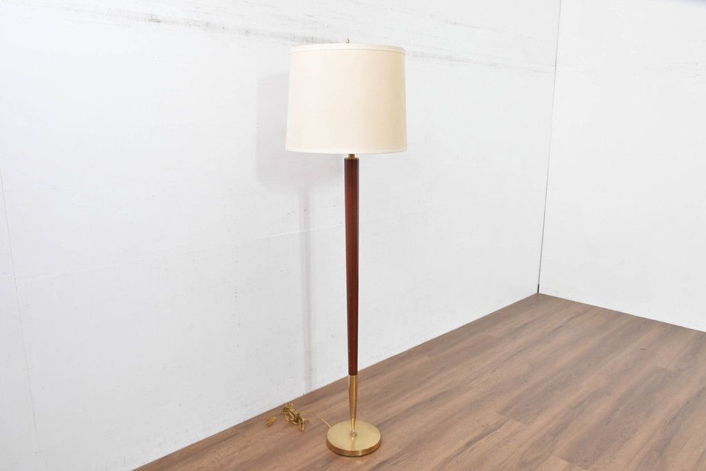 アメリカビンテージ 温かみのある支柱とゴールドの組み合わせが絶妙なコントラストを演出するフロアランプ(フロアスタンド、スタンド照明、スタンドライト、シェードライト、布シェード、ヴィンテージ)(R-084431)