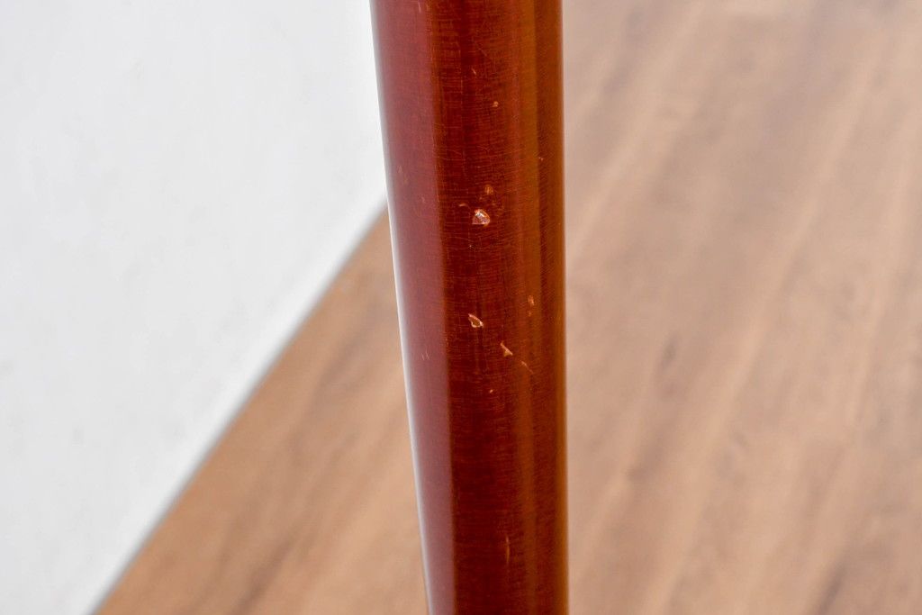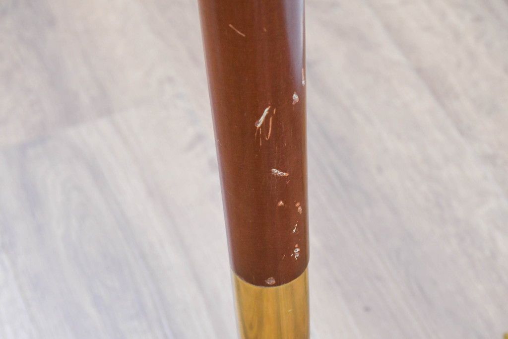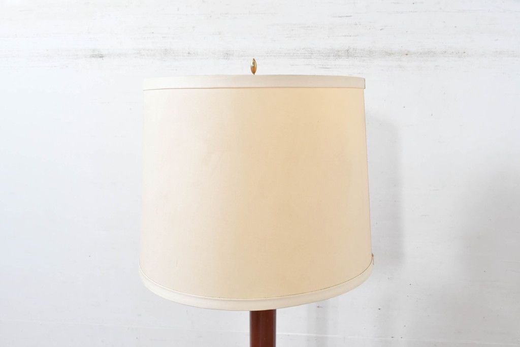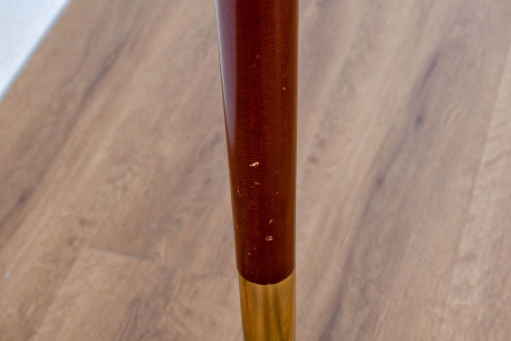 アメリカビンテージ 温かみのあるウッド調の支柱と上品に輝く真鍮仕上げのベースが高級感を演出するフロアランプ(フロアスタンド、スタンド照明、シェードライト、布シェード、ヴィンテージ)(R-084431)です。