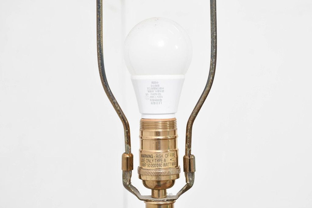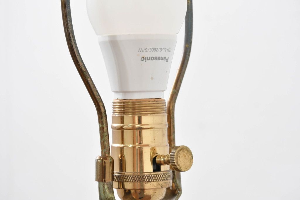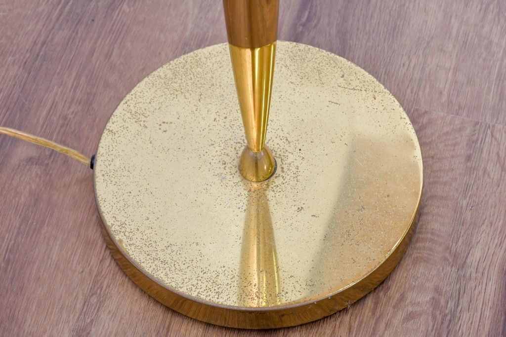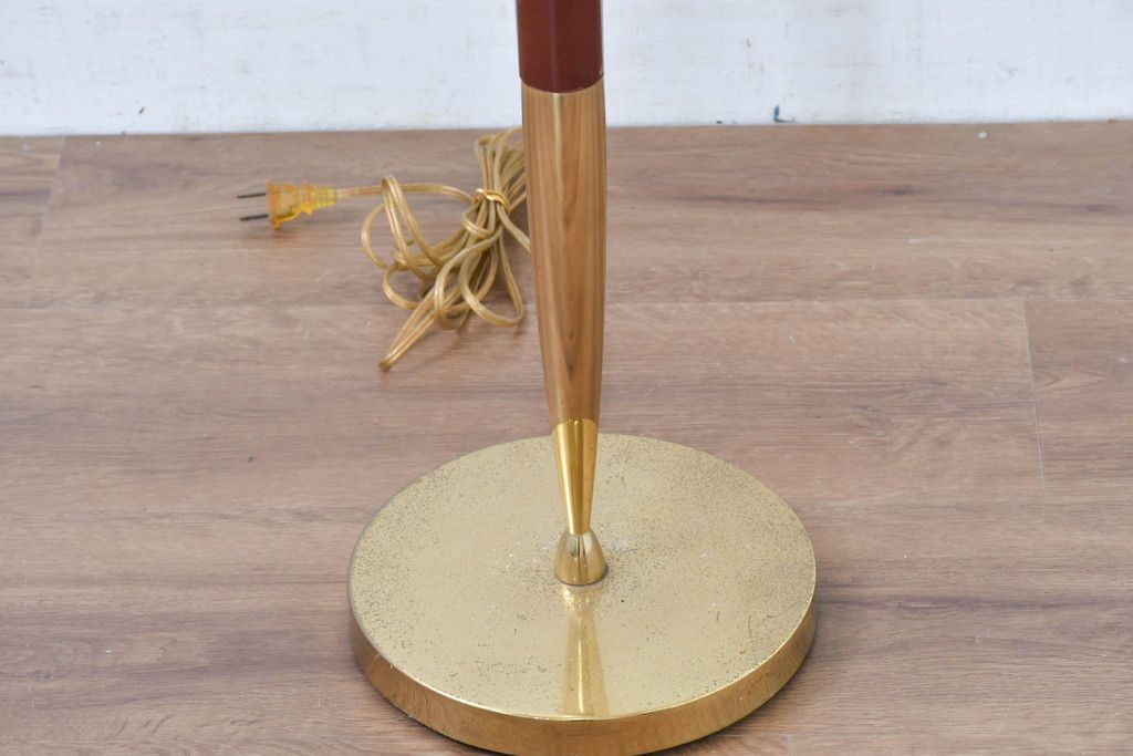 照明・ランプ> フロアスタンド > アメリカビンテージ 温かみのある支柱とゴールドの組み合わせが絶妙なコントラストを演出するフロアランプ(フロアスタンド、スタンド照明、スタンドライト、シェードライト、布シェード、ヴィンテージ)(R-084431)