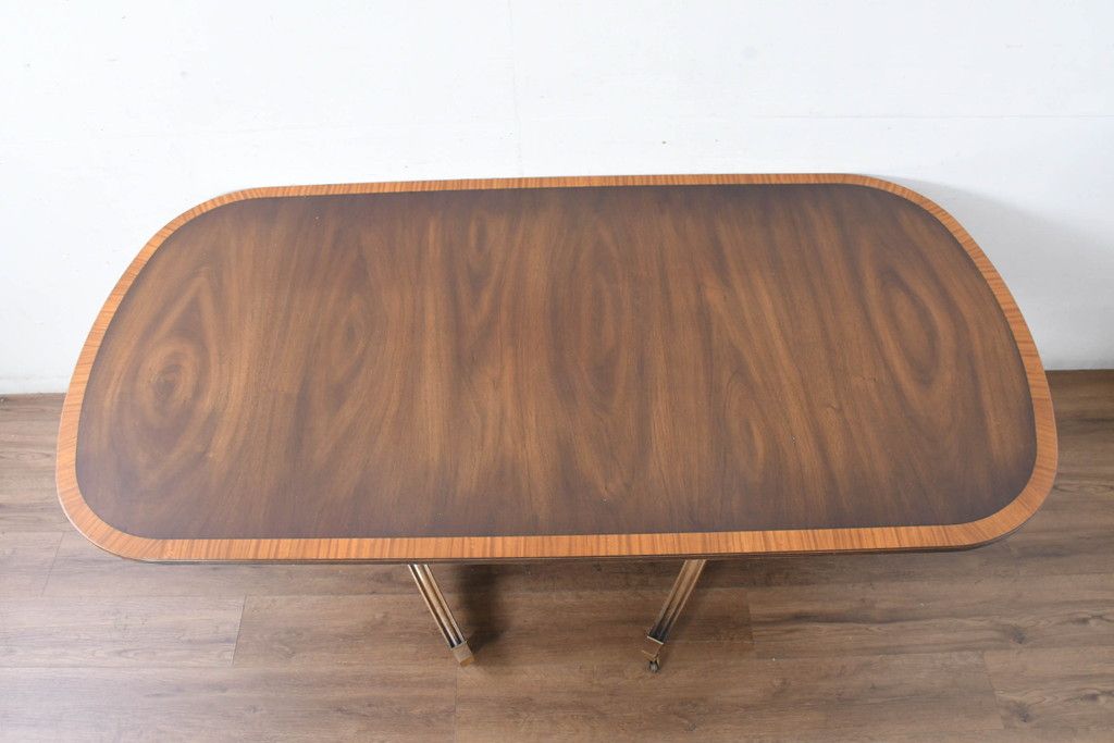 中古 美品 イギリス 高級ブランド RACKSTRAW(ラックストロー) 優雅な曲線を描く2本脚のデザインが美しいダイニングテーブル(食卓、4人用、6人用、4人掛け、6人掛け、英国)(定価約45万円)(R-084439)