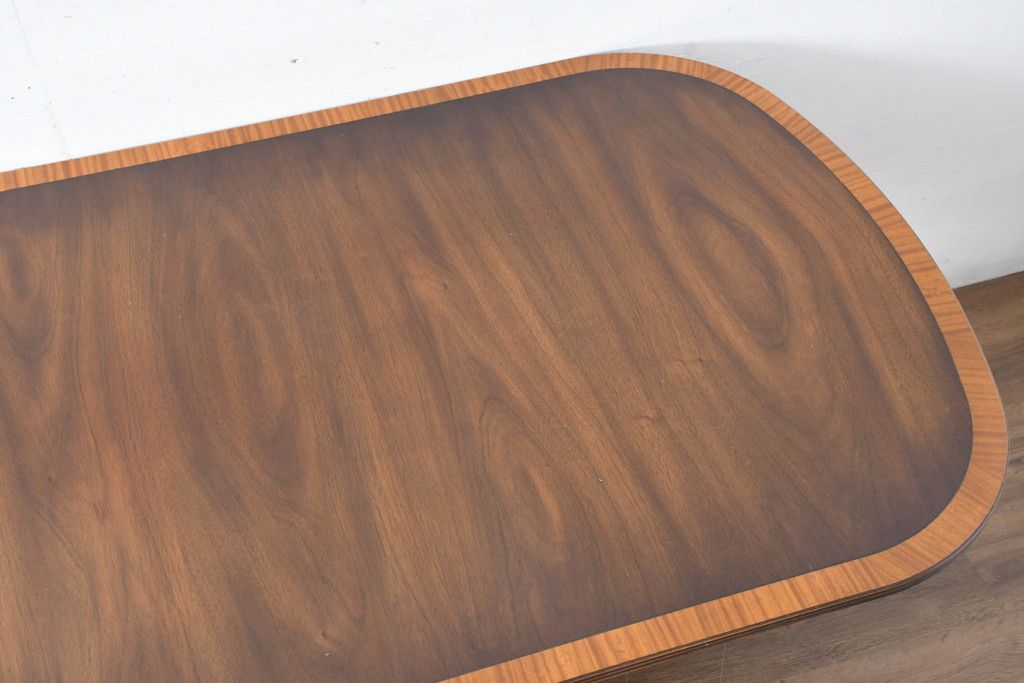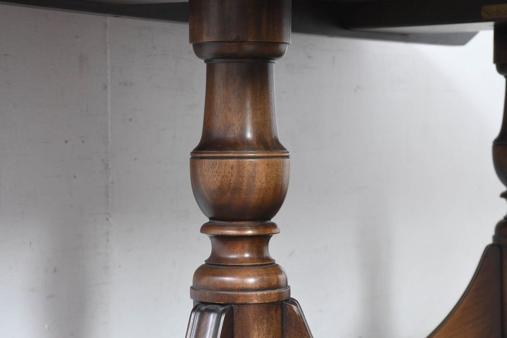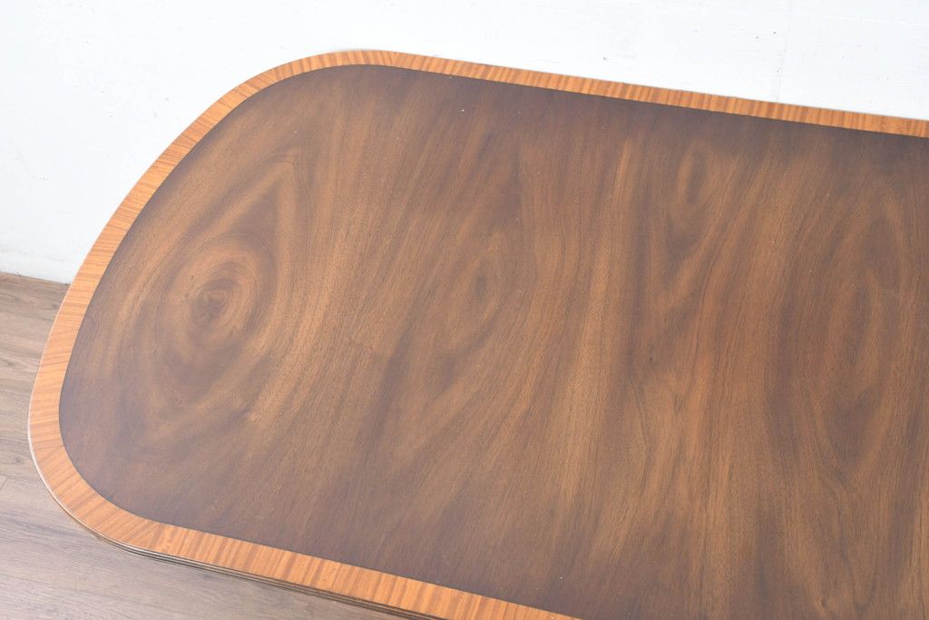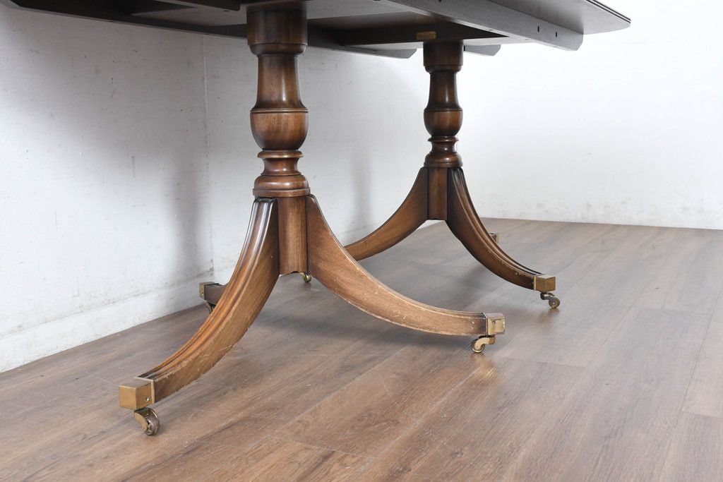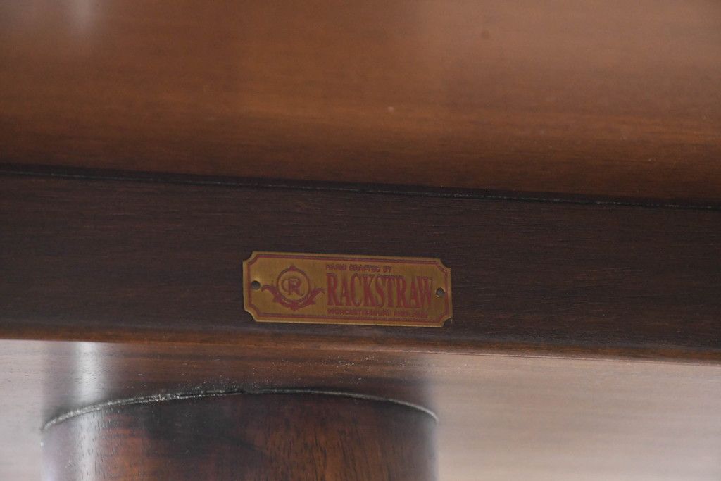 テーブル> 6人用ダイニングテーブル > 中古 美品 イギリス 高級ブランド RACKSTRAW(ラックストロー) 優雅な曲線を描く2本脚のデザインが美しいダイニングテーブル(食卓、4人用、6人用、4人掛け、6人掛け、英国)(定価約45万円)(R-084439)