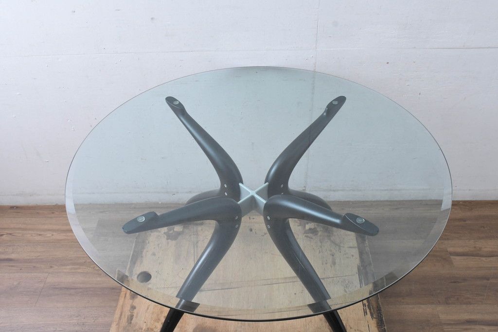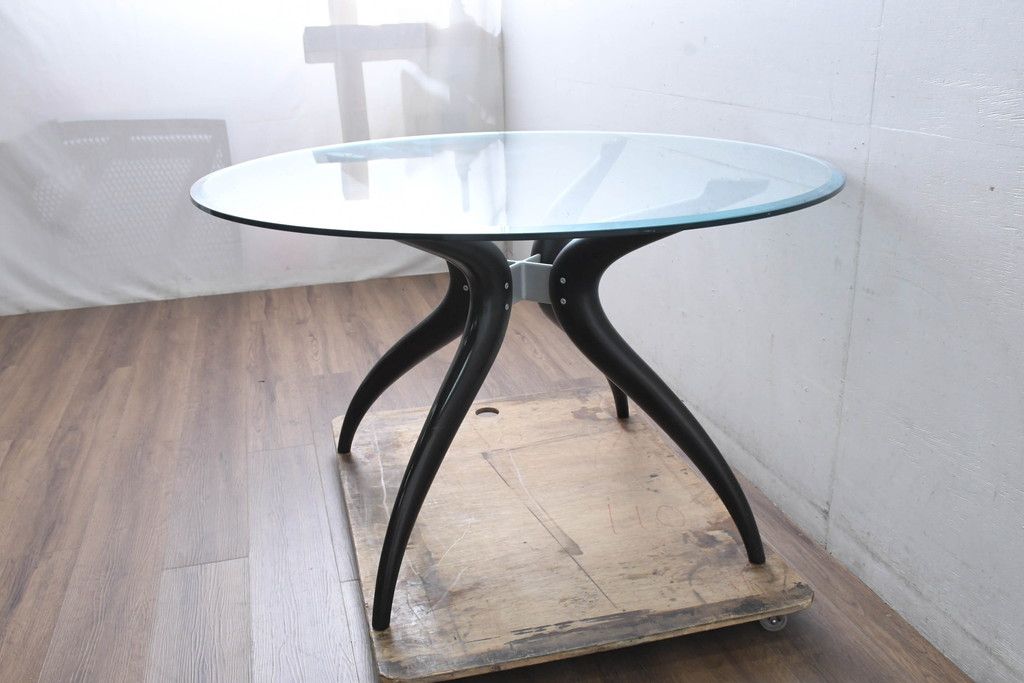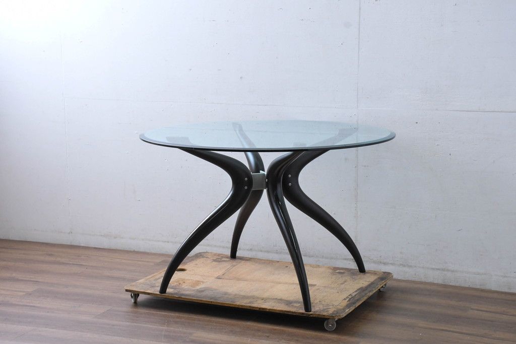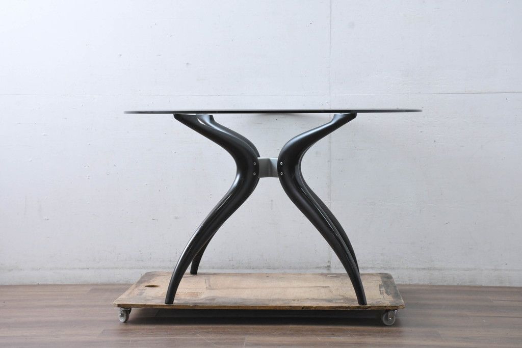 ラフジュ工房> テーブル> 4人用ダイニングテーブル > 中古 美品 イタリア製 ポラダ(porada) 芸術品のような独特のデザインが魅力のダイニングテーブル(ガラステーブル、ラウンドテーブル、2人掛け、4人掛け)(定価約46万円)(R-084441)