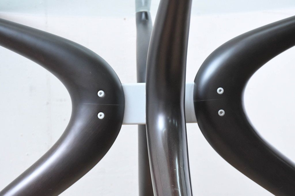 ラフジュ工房> テーブル> 2人用ダイニングテーブル > 中古 美品 イタリア製 ポラダ(porada) 芸術品のような独特のデザインが魅力のダイニングテーブル(ガラステーブル、ラウンドテーブル、2人掛け、4人掛け)(定価約46万円)(R-084441)