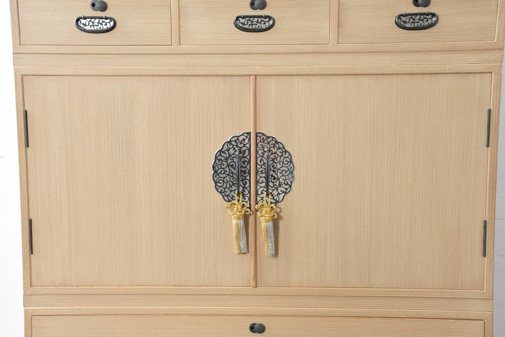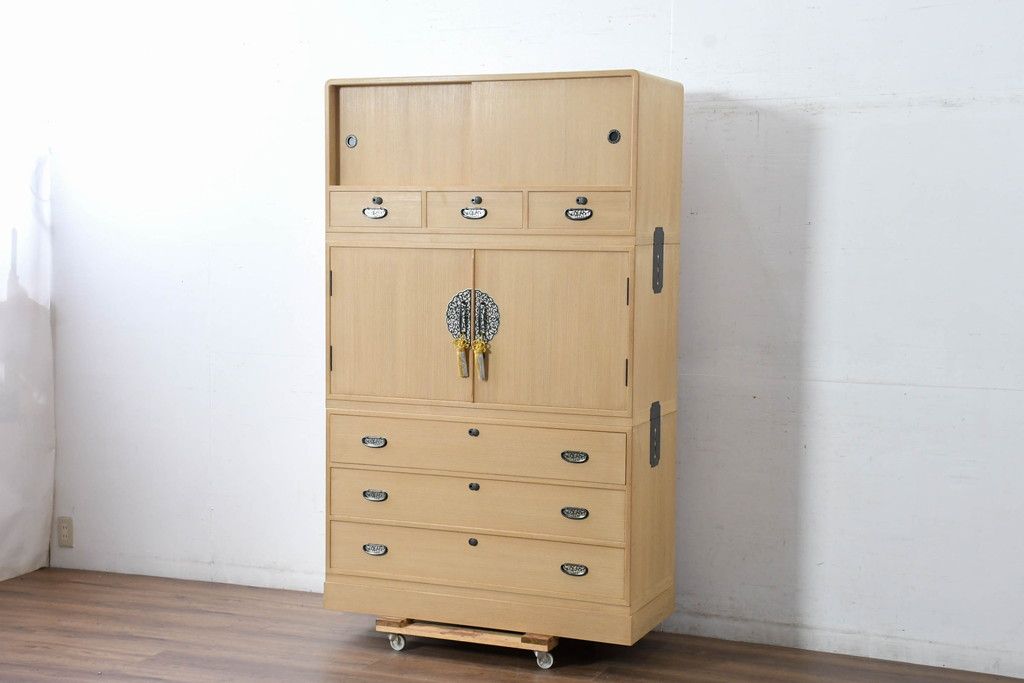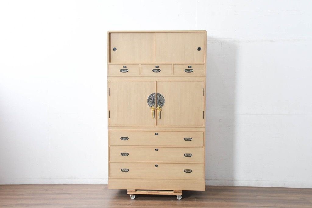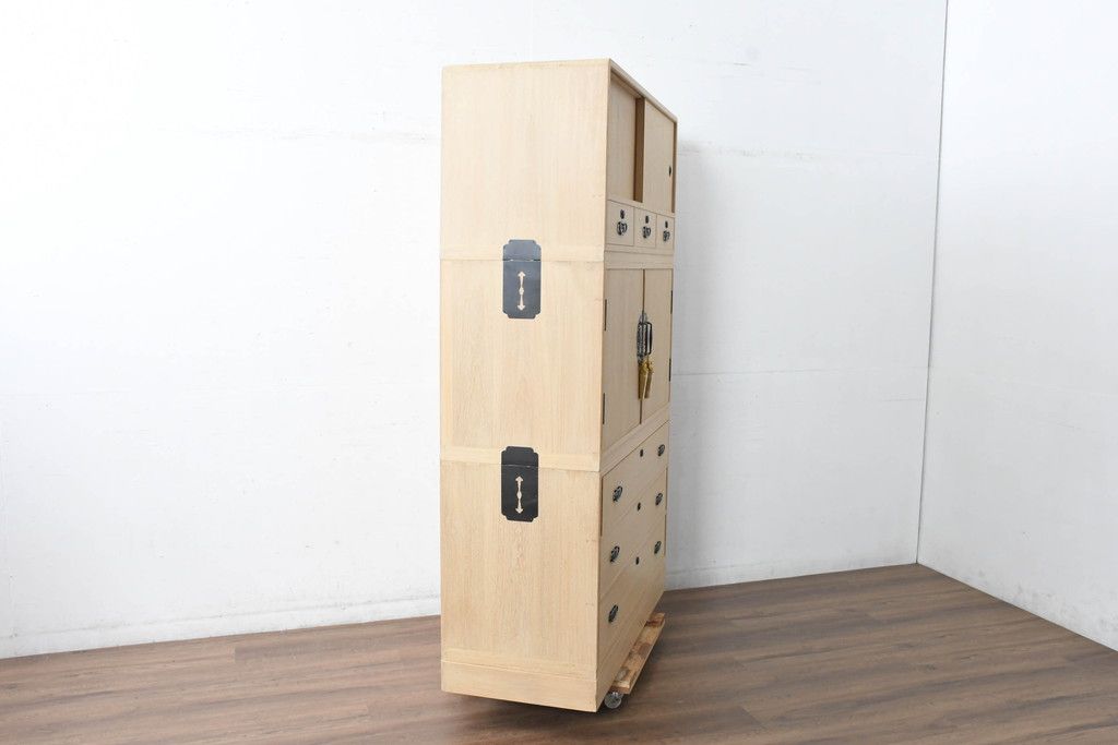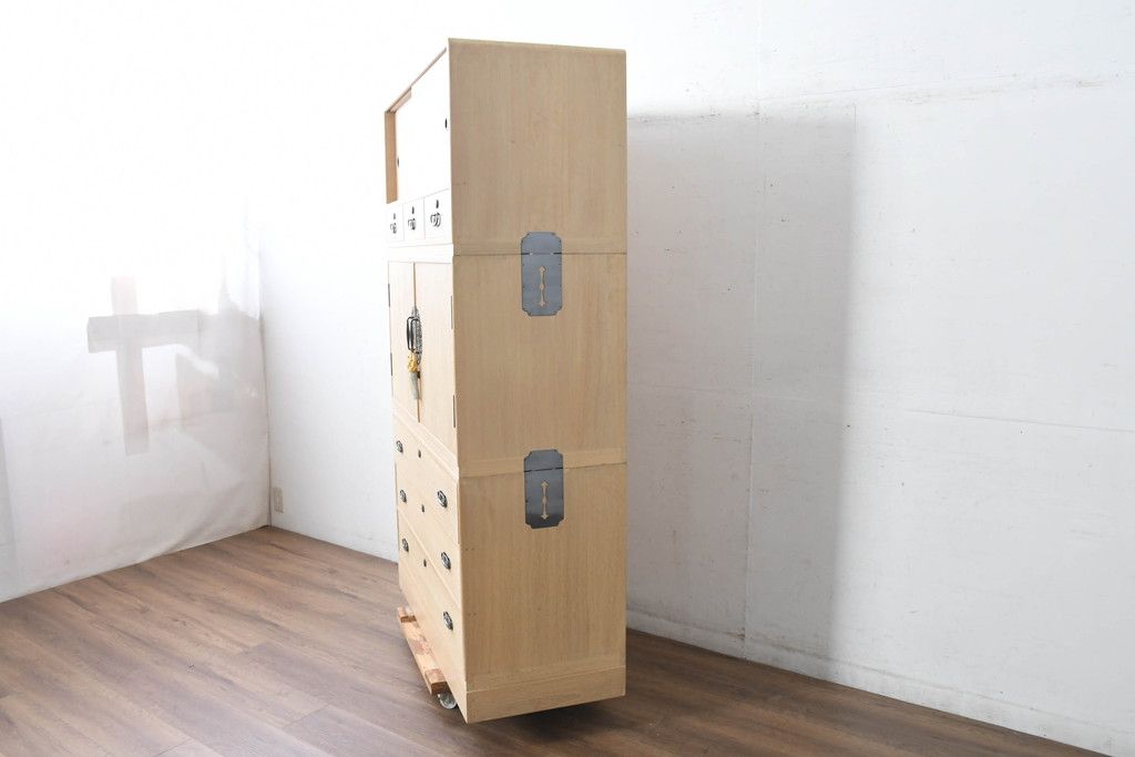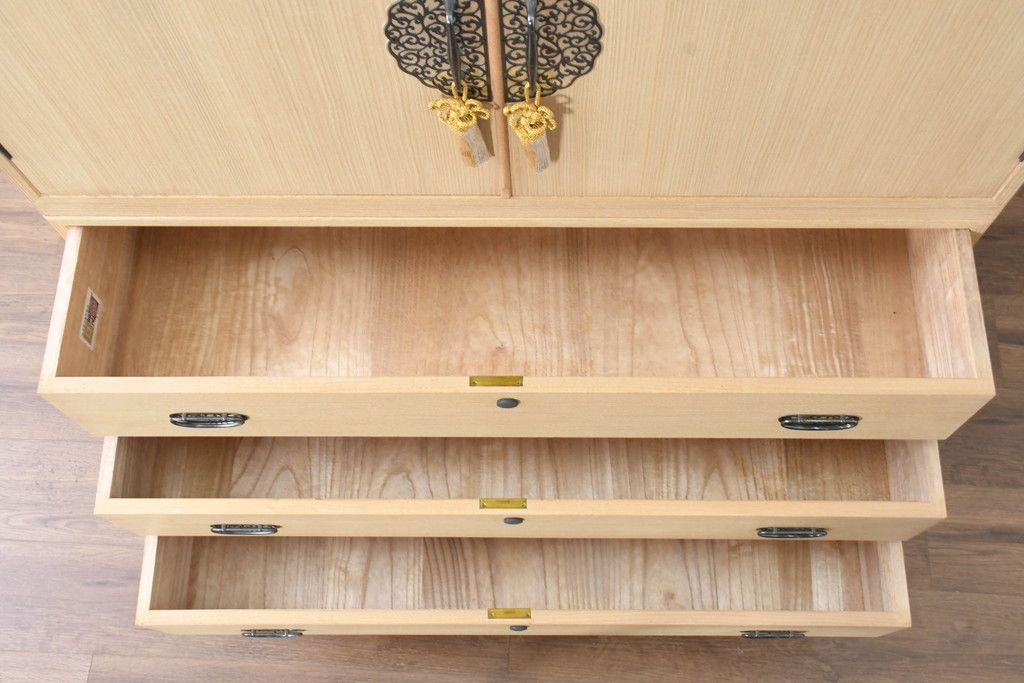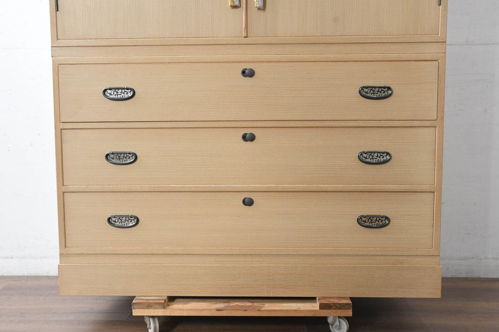 和箪笥> 衣装箪笥 > 中古 衣装盆付き 上品な金具の意匠が目を引く加茂総桐箪笥(並厚、桐たんす、衣装箪笥、収納箪笥、着物箪笥、引き出し、和タンス、チェスト、バラ売り可能)(R-084444)