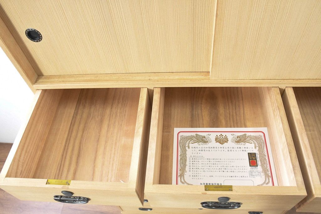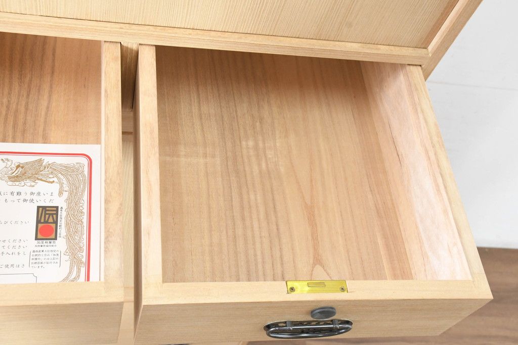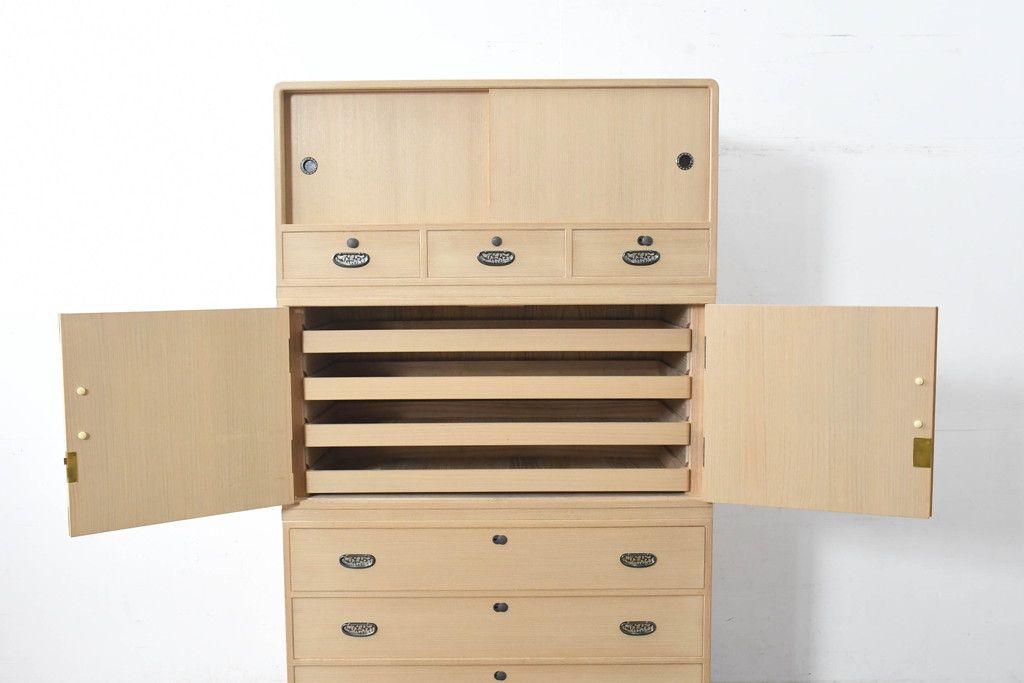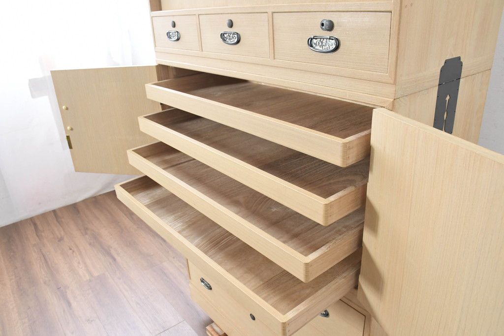 和箪笥> 着物箪笥 > 中古 衣装盆付き 上品な金具の意匠が目を引く加茂総桐箪笥(並厚、桐たんす、衣装箪笥、収納箪笥、着物箪笥、引き出し、和タンス、チェスト、バラ売り可能)(R-084444)