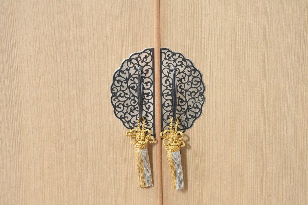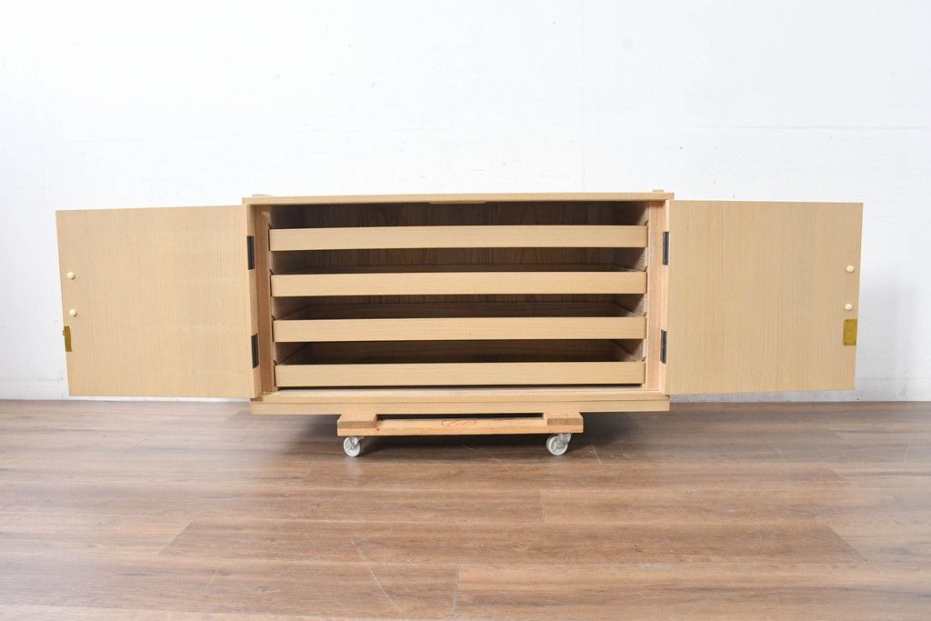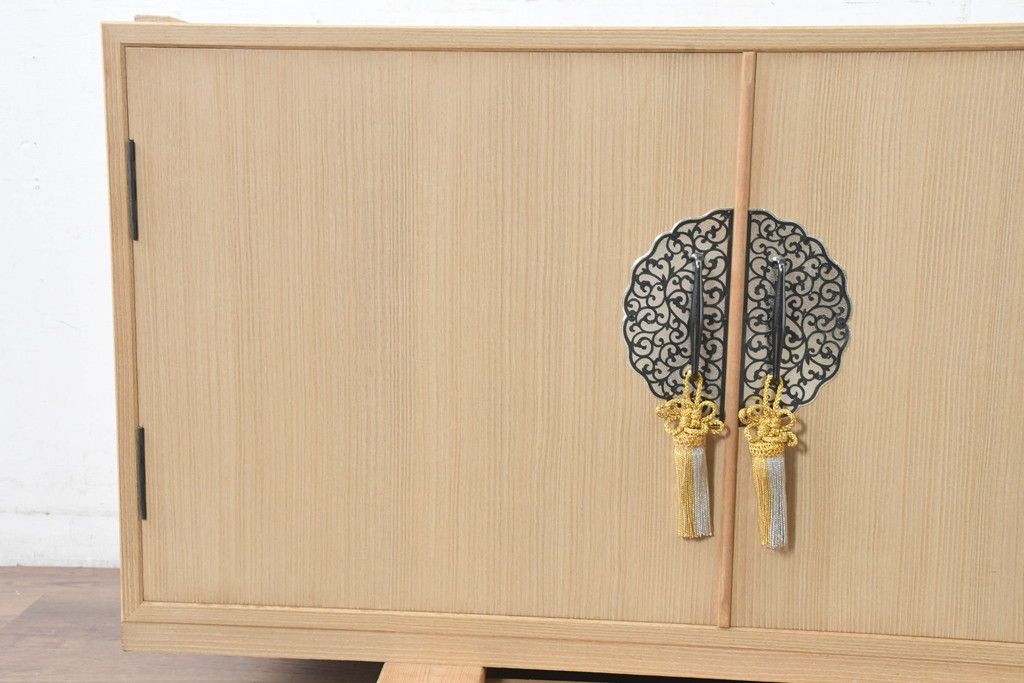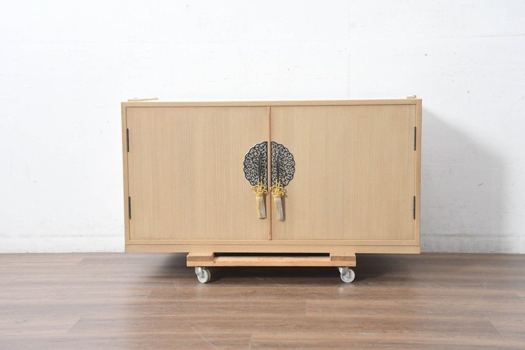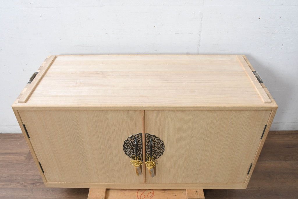 ラフジュ工房> キャビネット・戸棚> サイドキャビネット > 中古 衣装盆付き 上品な金具の意匠が目を引く加茂総桐箪笥・中段(並厚、桐たんす、着物箪笥、和タンス、サイドボード、サイドキャビネット)(R-084446)