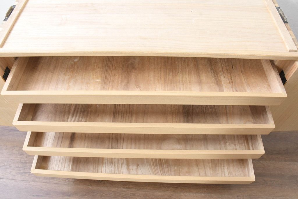 ラフジュ工房> キャビネット・戸棚> サイドボード > 中古 衣装盆付き 上品な金具の意匠が目を引く加茂総桐箪笥・中段(並厚、桐たんす、着物箪笥、和タンス、サイドボード、サイドキャビネット)(R-084446)