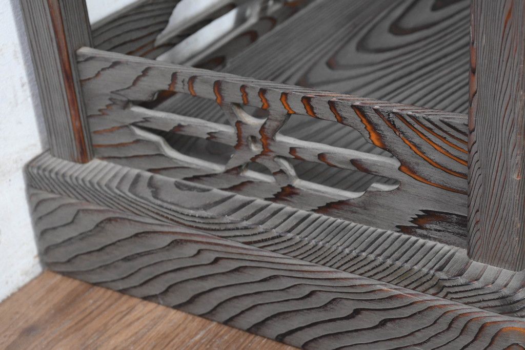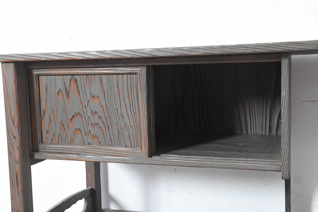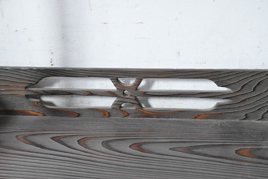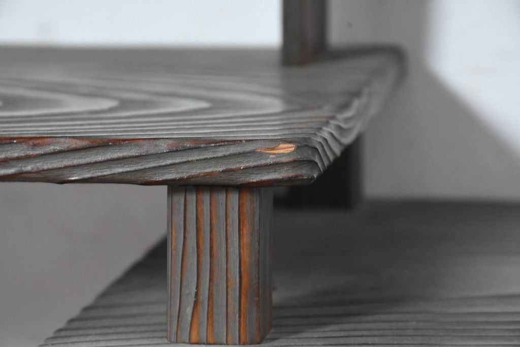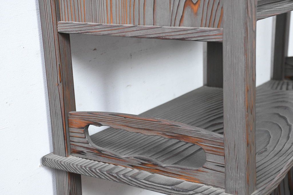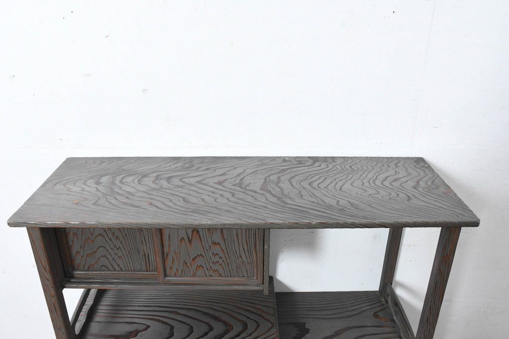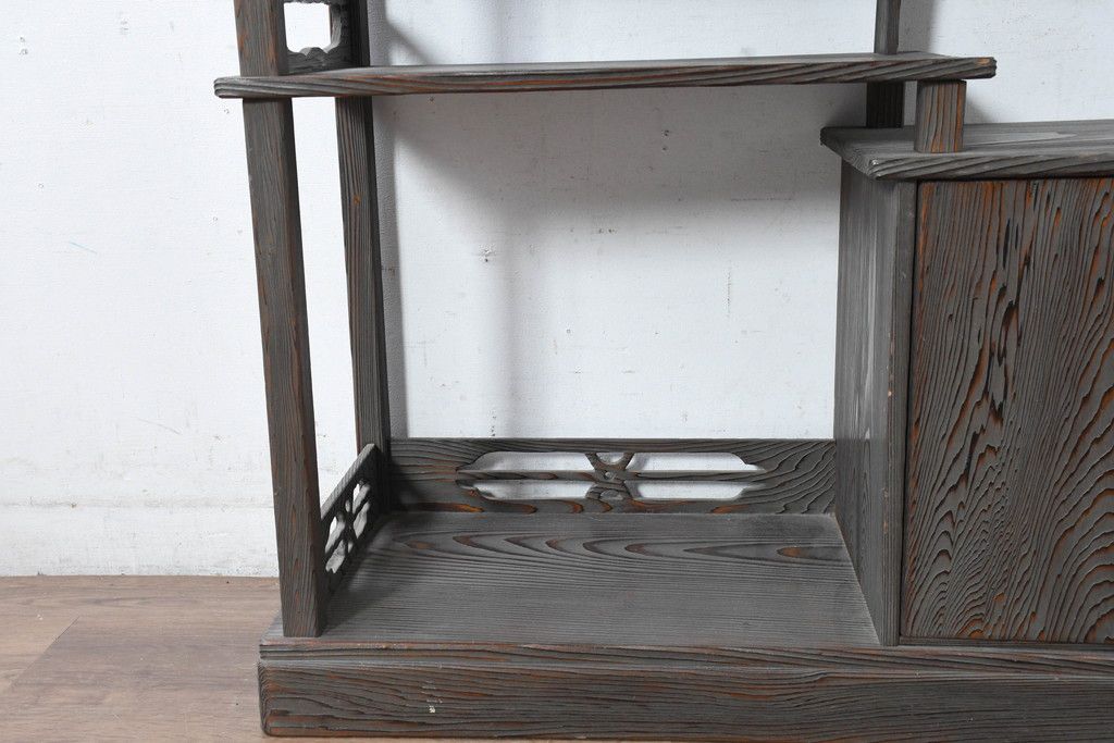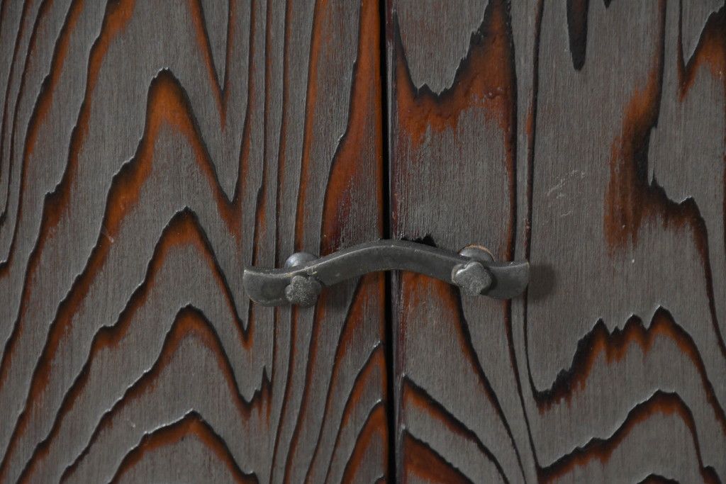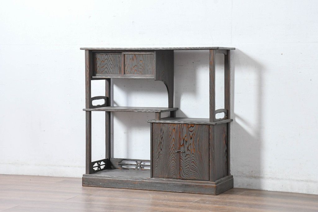 中古 美品 波打つ木目が美しい渋い色味の茶棚(飾り棚、違い棚、収納棚、戸棚)(R-084449)