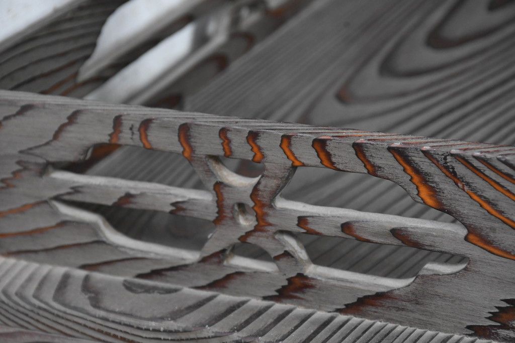 中古 美品 波打つ木目が美しい渋い色味の茶棚(飾り棚、違い棚、収納棚、戸棚)(R-084449)です。