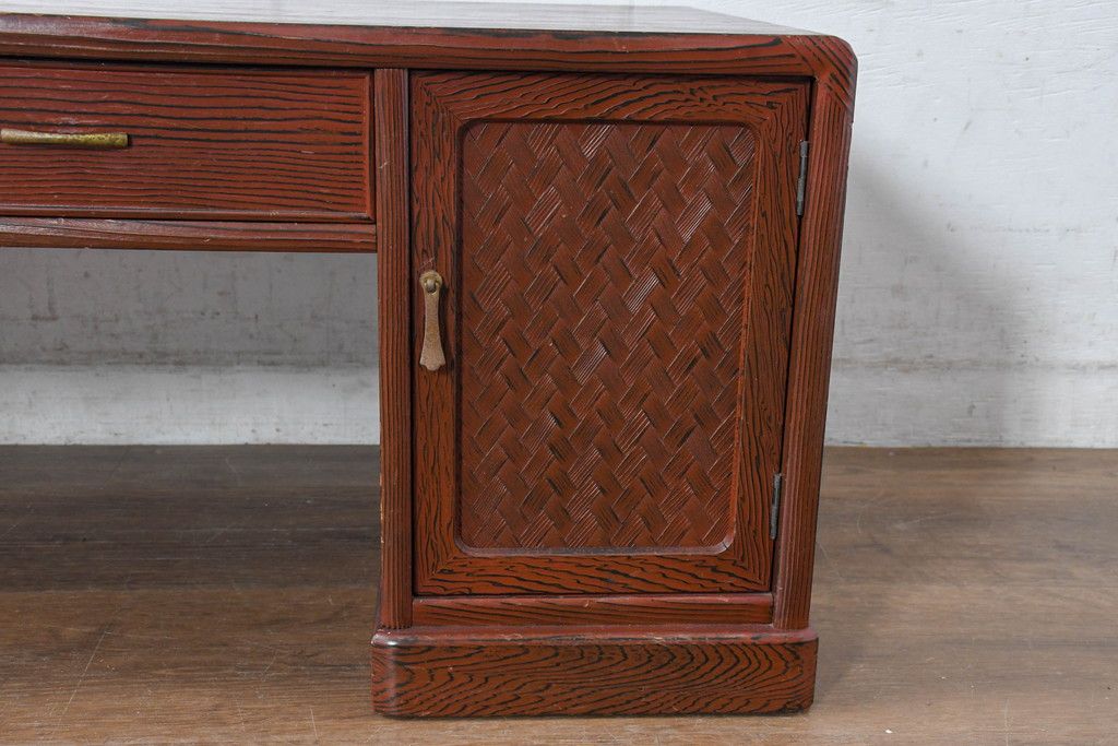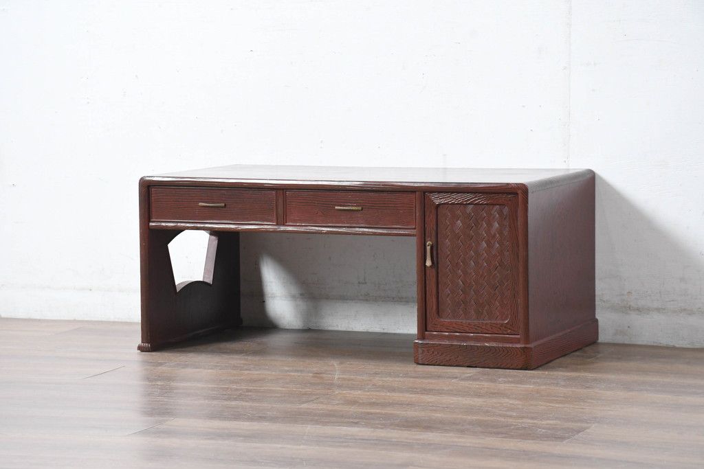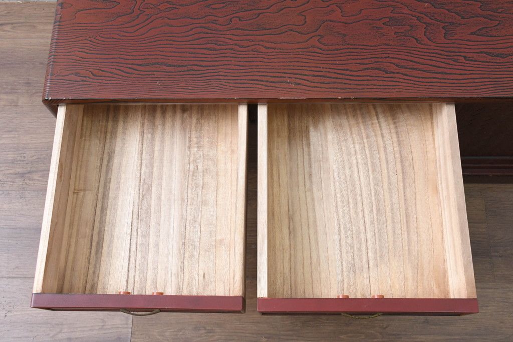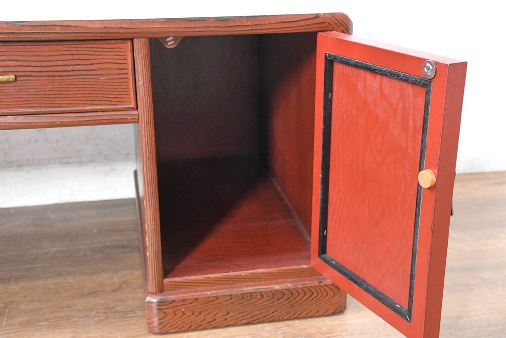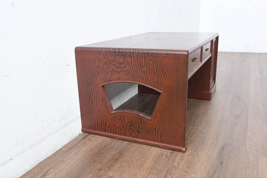 ラフジュ工房> デスク> 片袖机・両袖机 > 中古 高級品!! 高島屋デパート取り扱い 伝統技法 「杢目出し漆塗り」(根来漆塗り) 内部桐材 職人の技が光る!実用性とデザイン性を兼ね備えた座卓(文机、片袖机、座机、ローテーブル、ワークデスク)(R-084452)