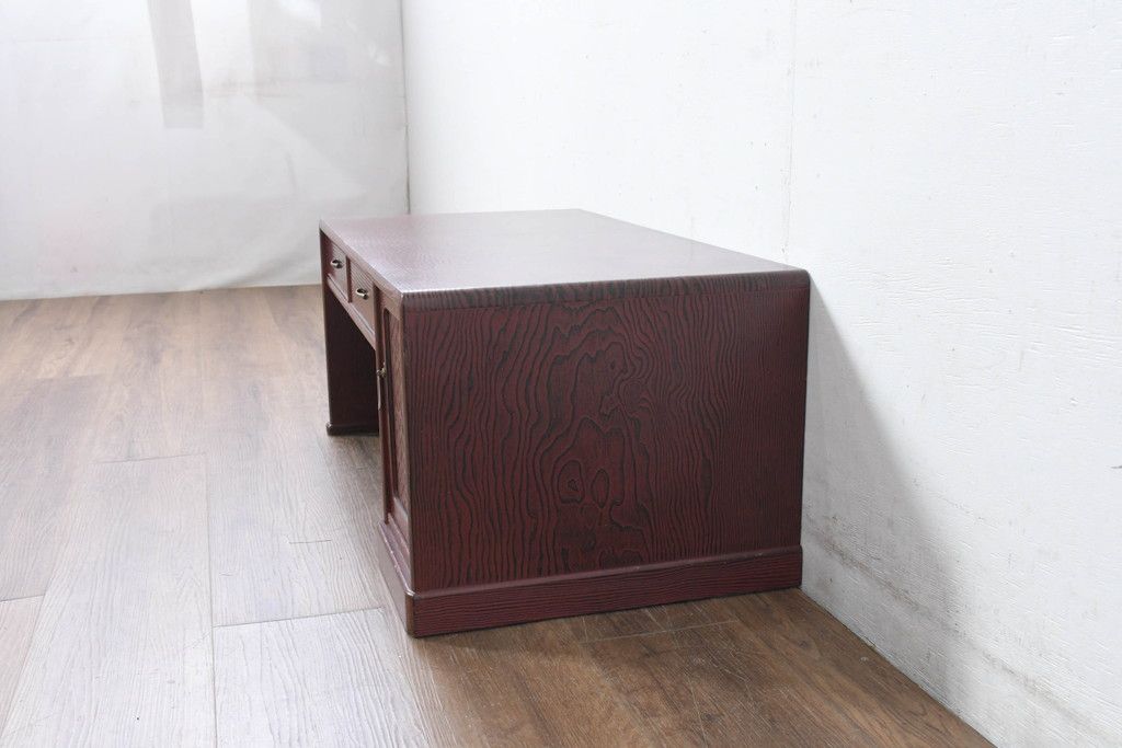 ラフジュ工房> テーブル> 座卓 > 中古 高級品!! 高島屋デパート取り扱い 伝統技法 「杢目出し漆塗り」(根来漆塗り) 内部桐材 職人の技が光る!実用性とデザイン性を兼ね備えた座卓(文机、片袖机、座机、ローテーブル、ワークデスク)(R-084452)