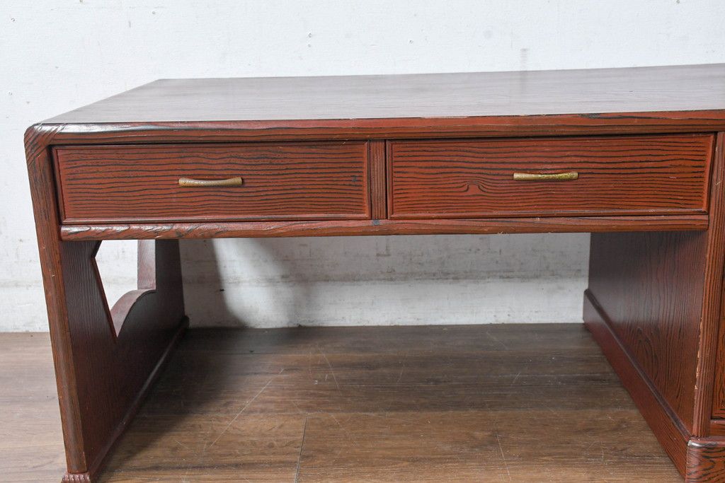 中古 高級品!! 高島屋デパート取り扱い 伝統技法 「杢目出し漆塗り」(根来漆塗り) 内部桐材 職人の技が光る!実用性とデザイン性を兼ね備えた座卓(文机、片袖机、座机、ローテーブル、ワークデスク)(R-084452)