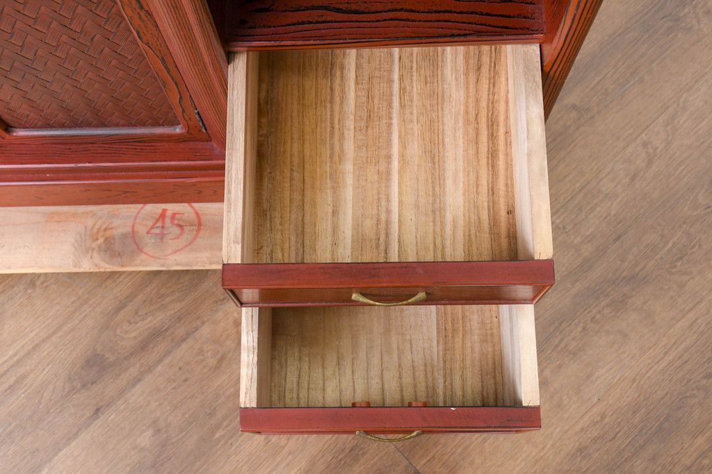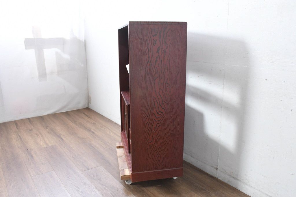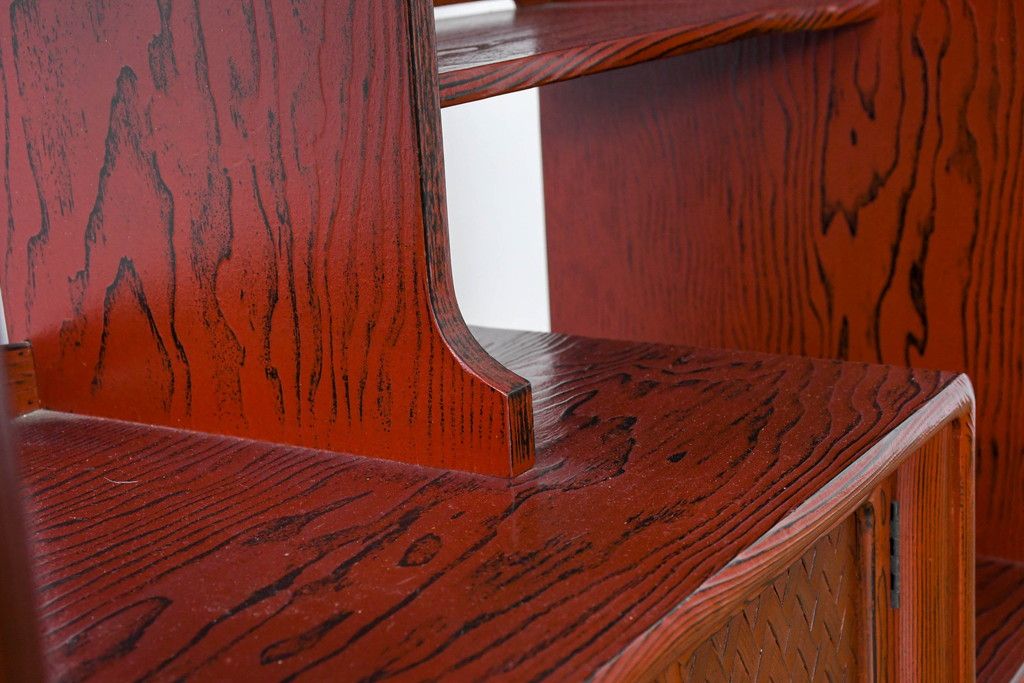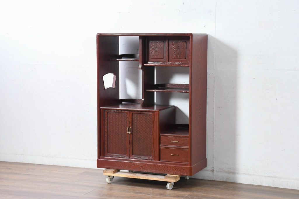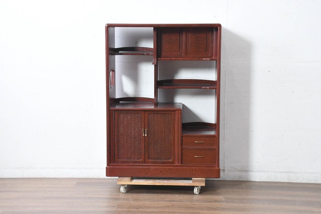 和箪笥> 茶箪笥・茶棚 > 中古 高級品!! 高島屋デパート取り扱い 伝統技法 「杢目出し漆塗り」(根来漆塗り) 内部桐材 上品な色味と艶が目を惹く飾り棚(違い棚、収納棚、茶棚、戸棚)(R-084453)