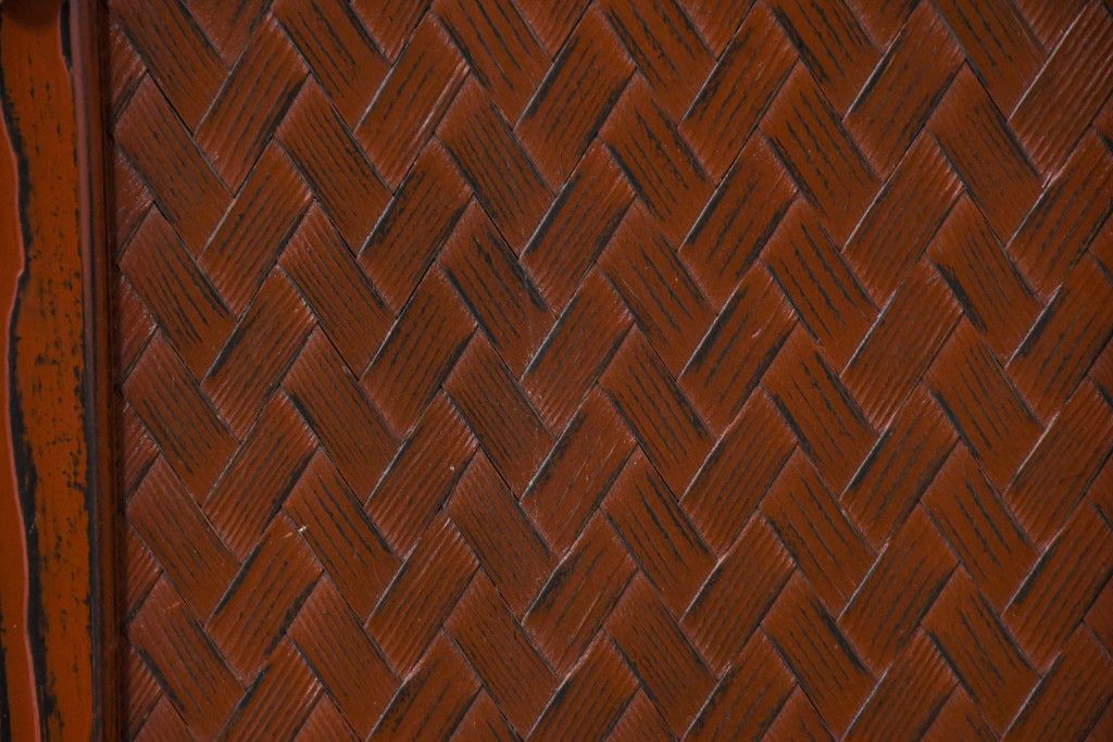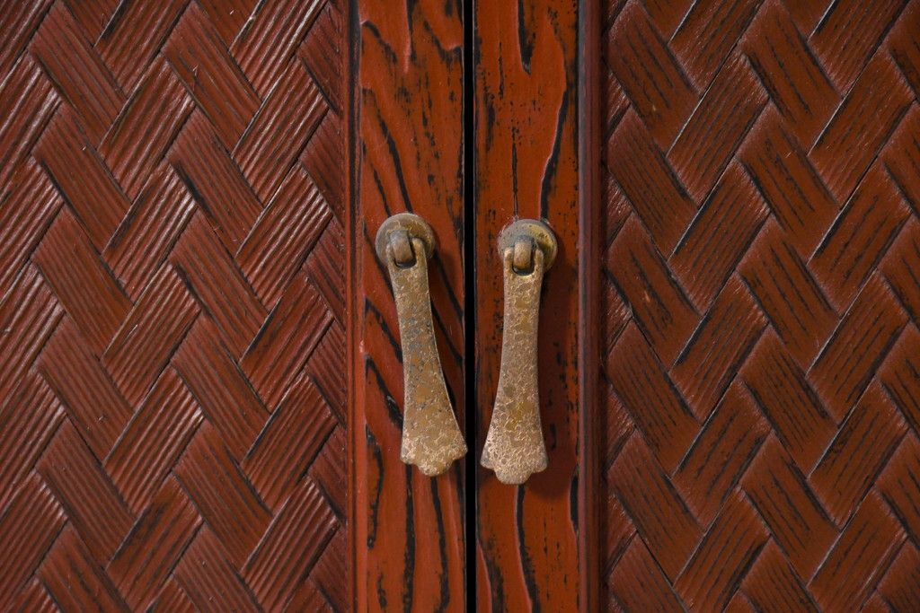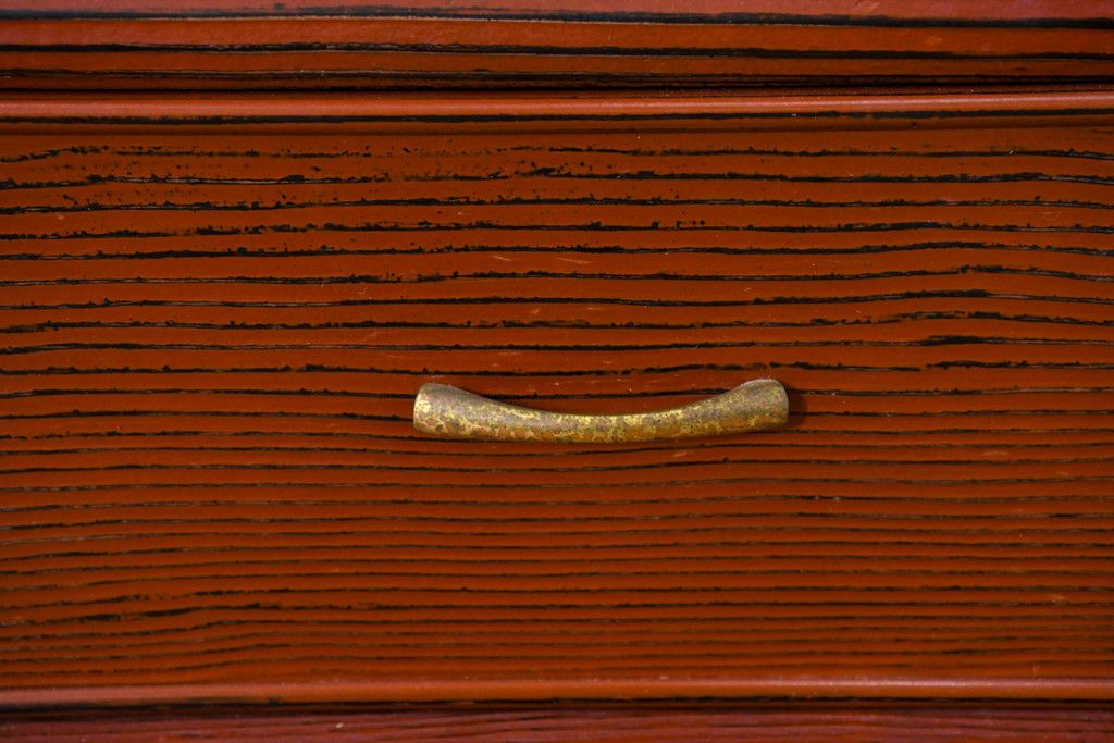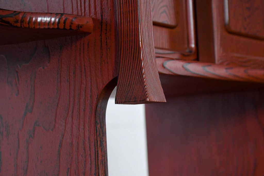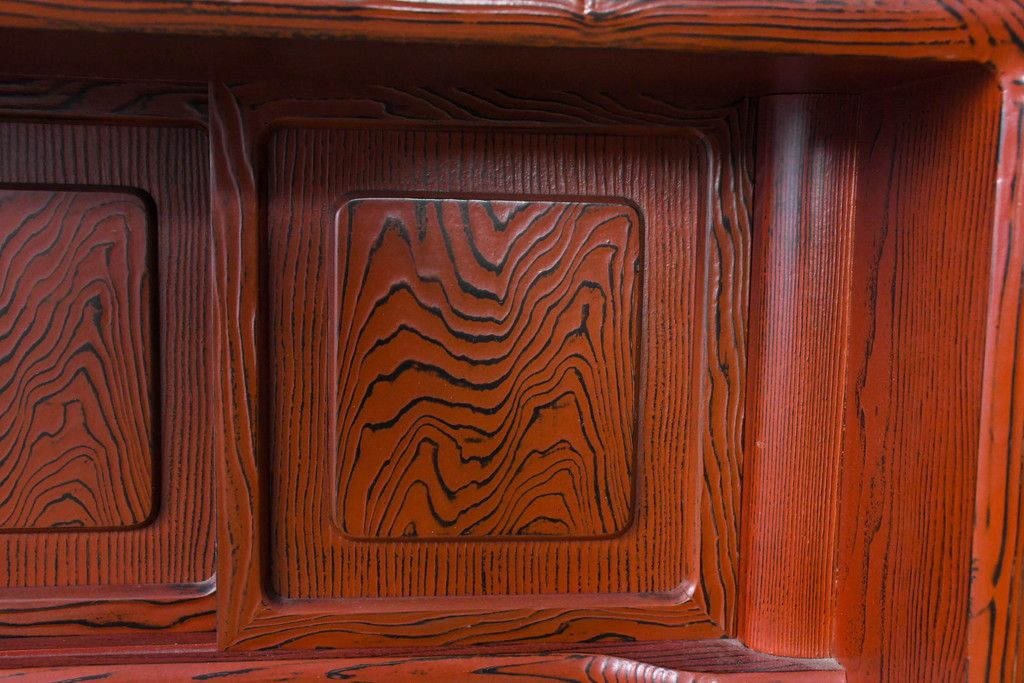 和箪笥> 茶箪笥・茶棚 > 中古 高級品!! 高島屋デパート取り扱い 伝統技法 「杢目出し漆塗り」(根来漆塗り) 内部桐材 上品な色味と艶が目を惹く飾り棚(違い棚、収納棚、茶棚、戸棚)(R-084453)