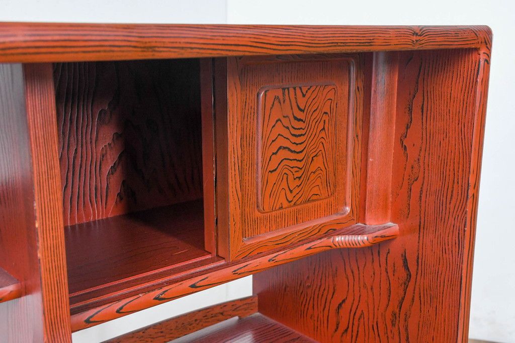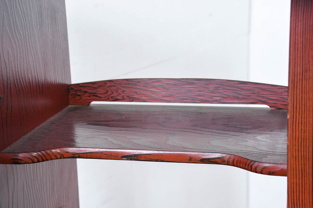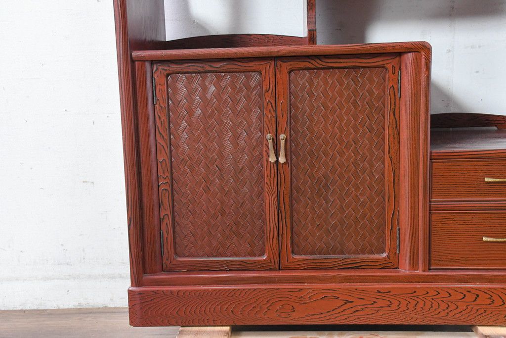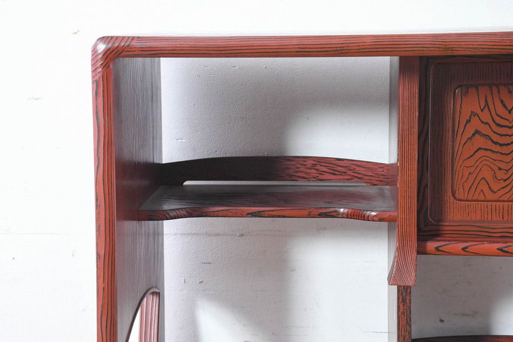 中古 高級品!! 高島屋デパート取り扱い 伝統技法 「杢目出し漆塗り」(根来漆塗り) 内部桐材 上品な色味と艶が目を惹く飾り棚(違い棚、収納棚、茶棚、戸棚)(R-084453)