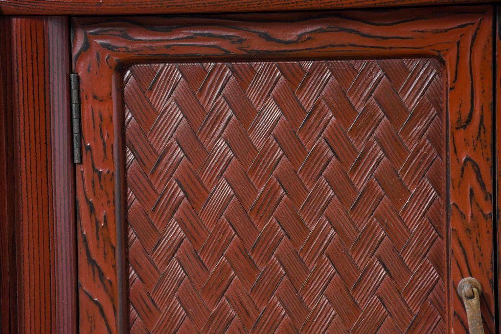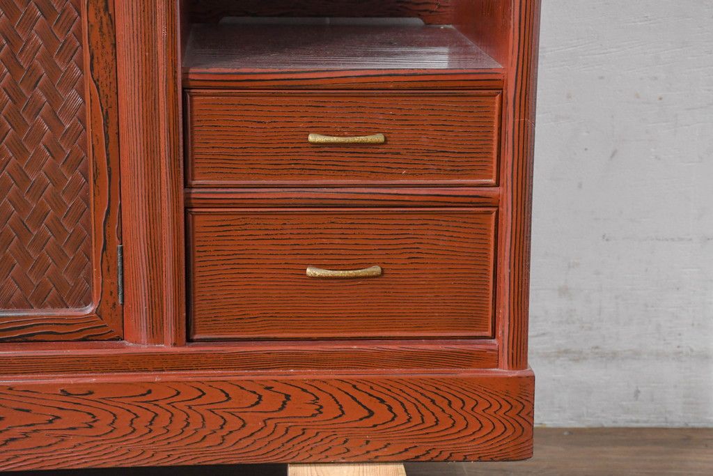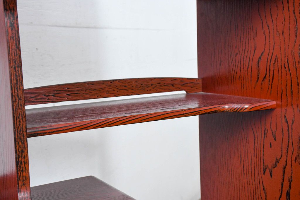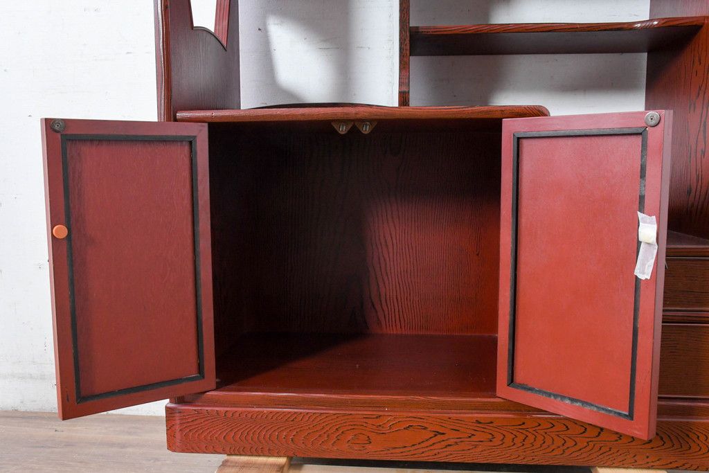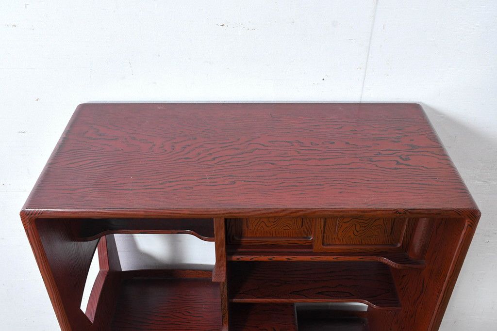 中古 高級品!! 高島屋デパート取り扱い 伝統技法 「杢目出し漆塗り」(根来漆塗り) 内部桐材 上品な色味と艶が目を惹く飾り棚(違い棚、収納棚、茶棚、戸棚)(R-084453)