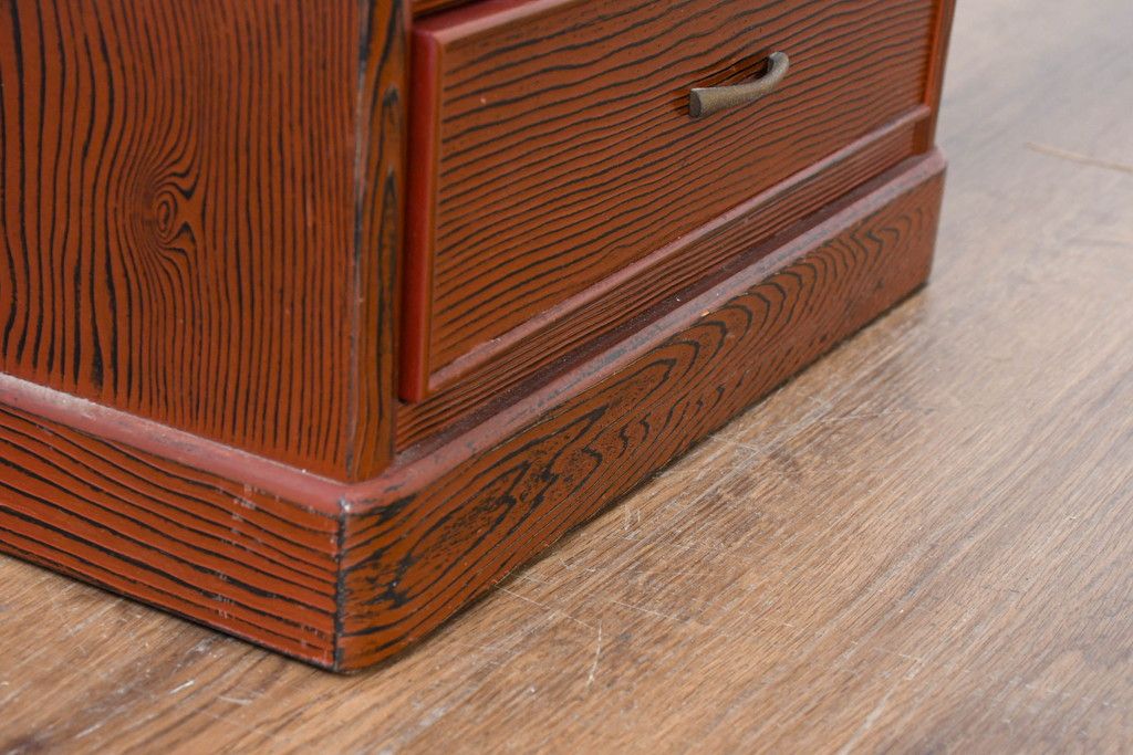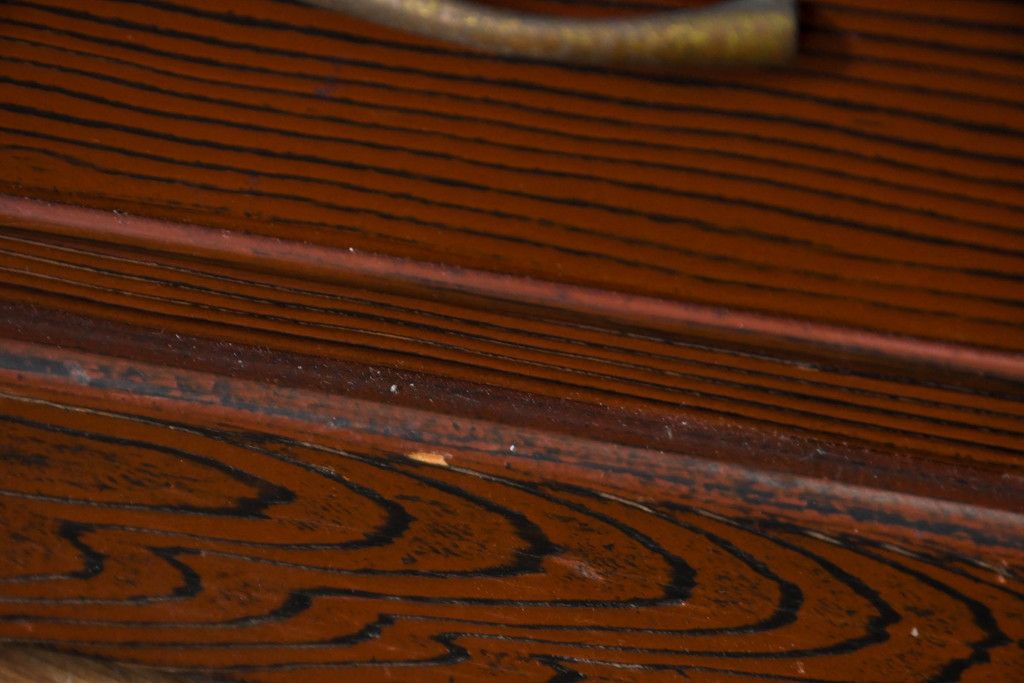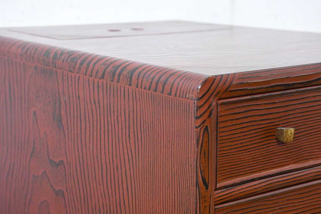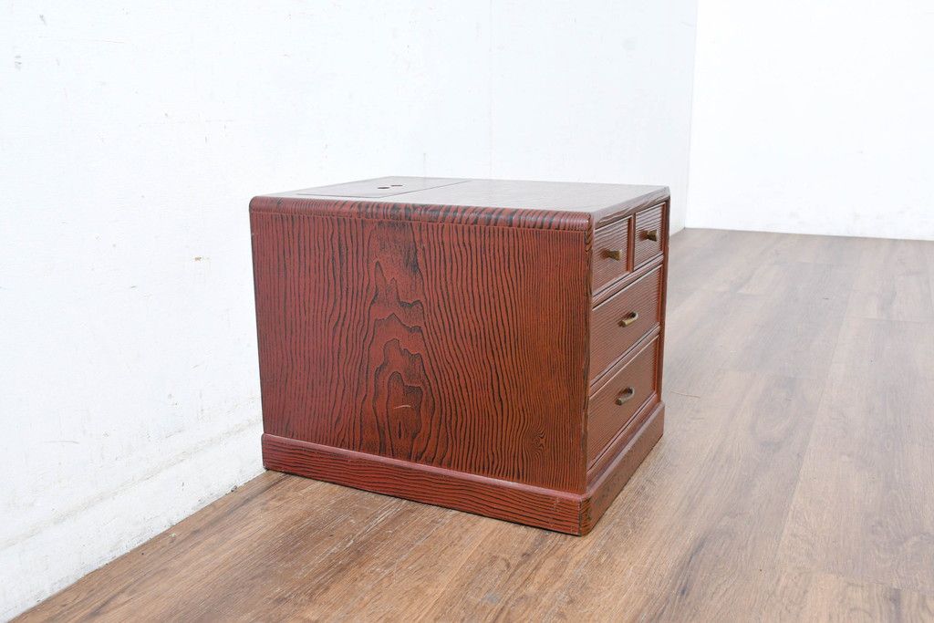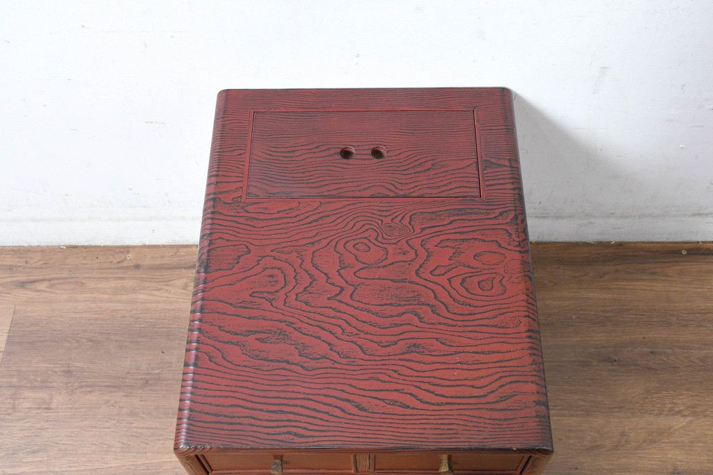 小物収納・トランク> 小引き出し > 中古 美品 高級品!! 高島屋デパート取り扱い 伝統技法 「杢目出し漆塗り」(根来漆塗り) 内部桐材 細部まで職人のこだわりを感じる上ブタ付きの小引き出し(卓上収納、小物収納)(R-084454)