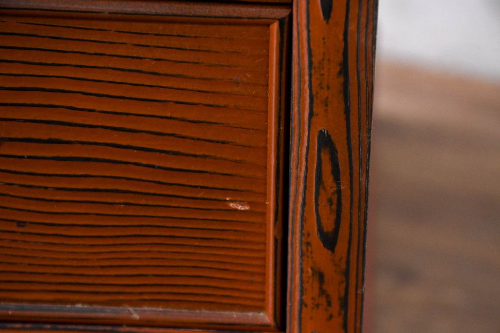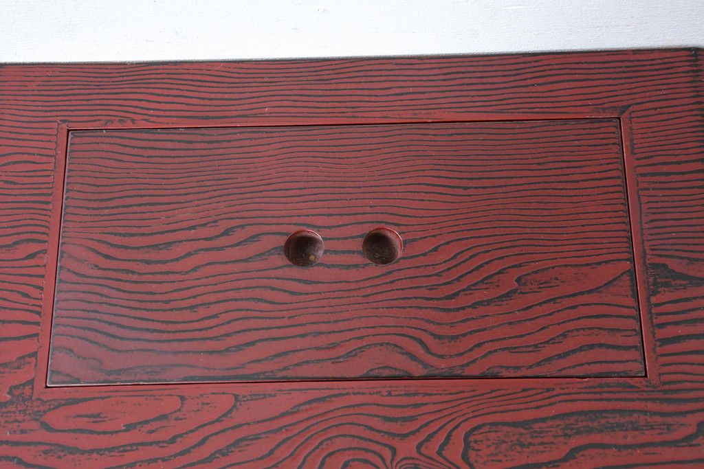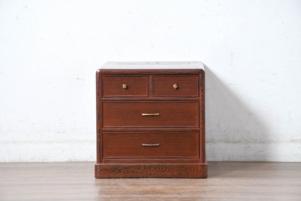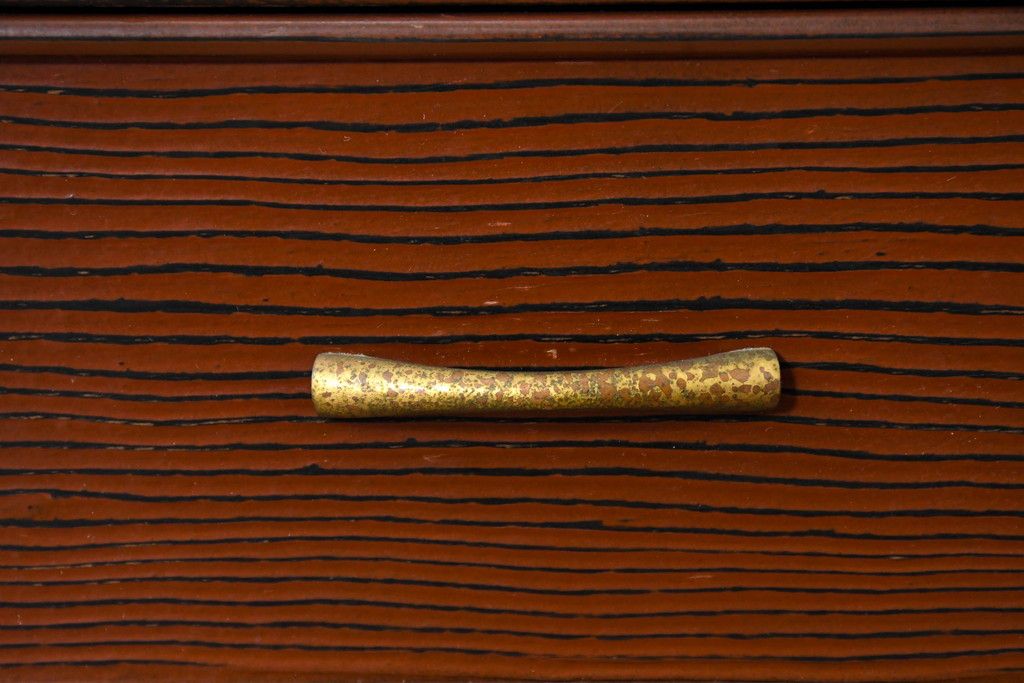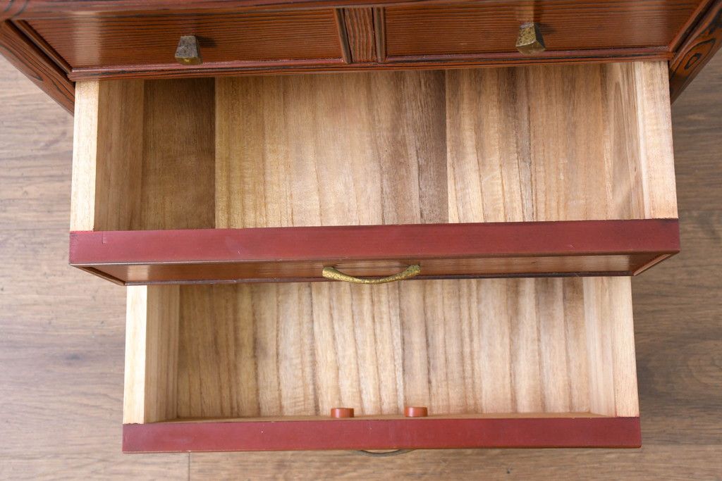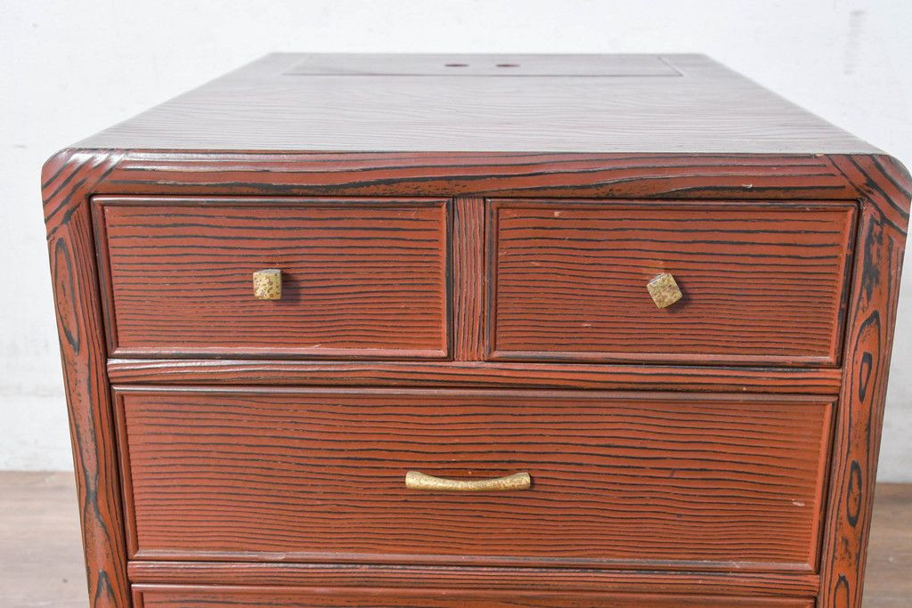 小物収納・トランク> 小引き出し > 中古 美品 高級品!! 高島屋デパート取り扱い 伝統技法 「杢目出し漆塗り」(根来漆塗り) 内部桐材 細部まで職人のこだわりを感じる上ブタ付きの小引き出し(卓上収納、小物収納)(R-084454)
