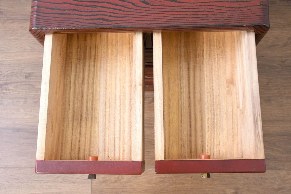 中古 美品 高級品!! 高島屋デパート取り扱い 伝統技法 「杢目出し漆塗り」(根来漆塗り) 内部桐材 細部まで職人のこだわりを感じる上ブタ付きの小引き出し(卓上収納、小物収納)(R-084454)