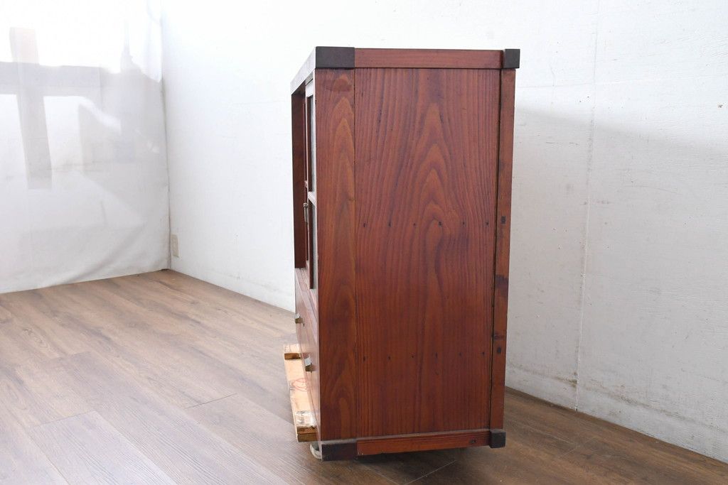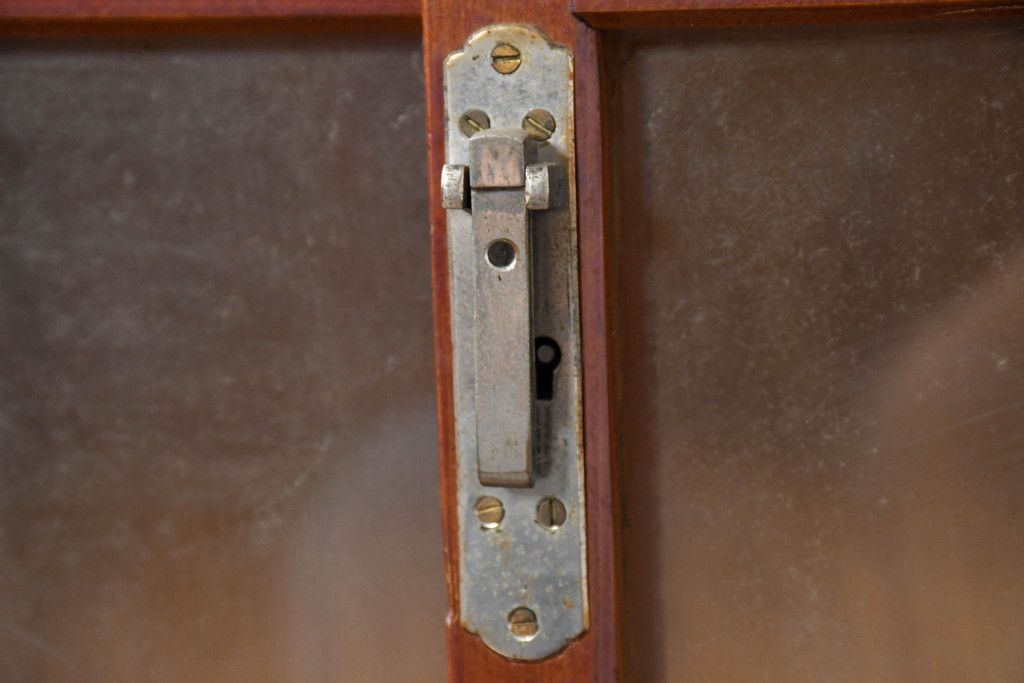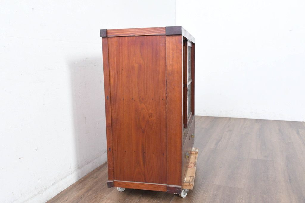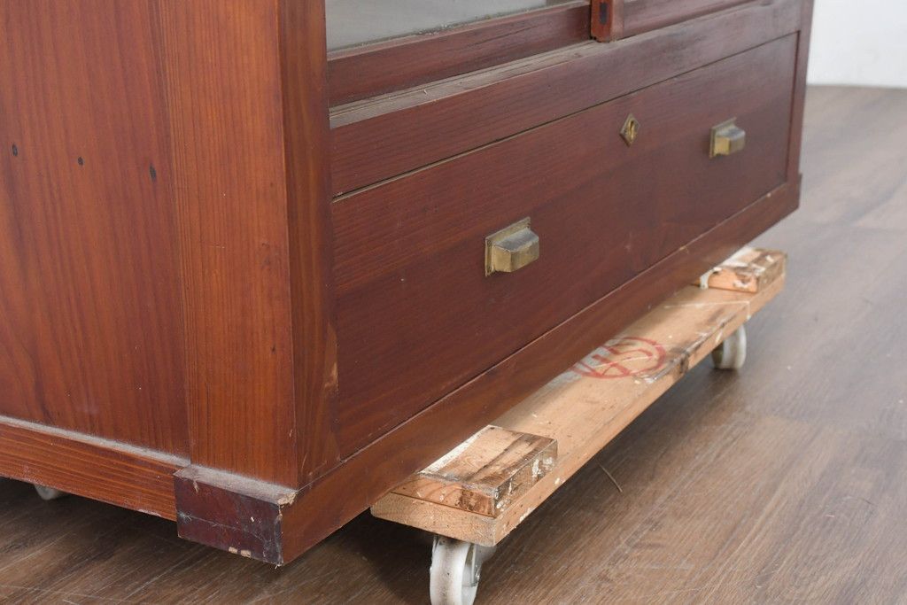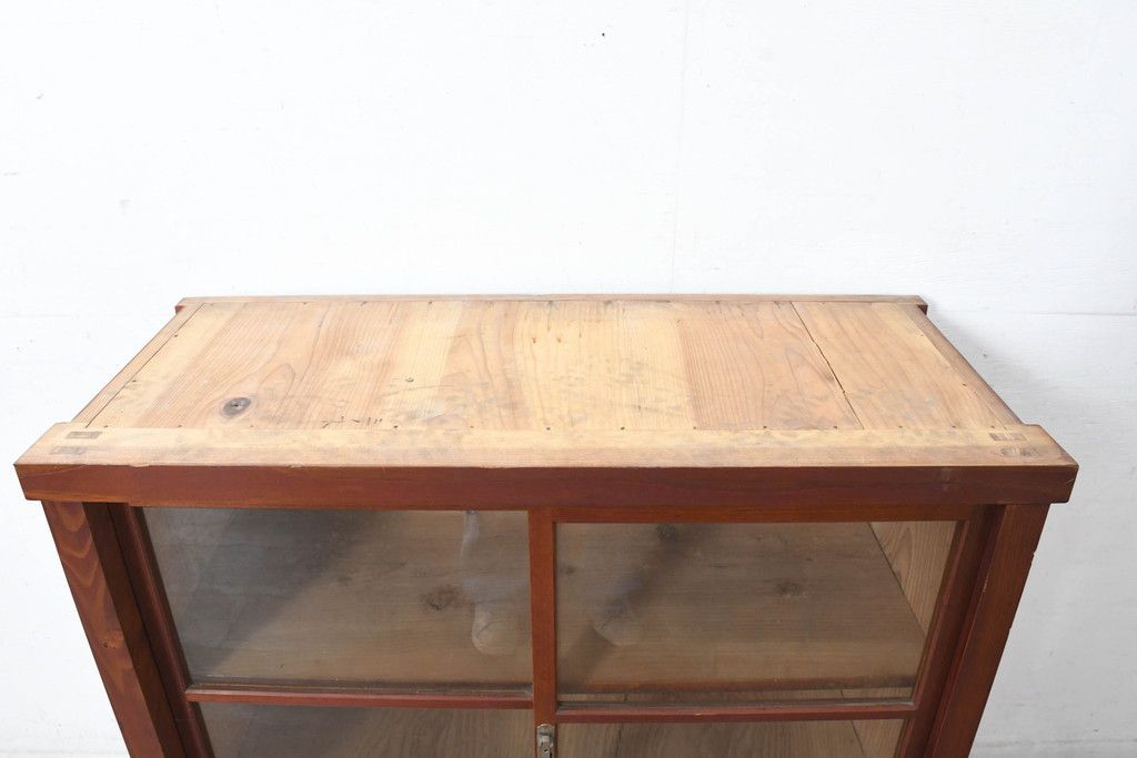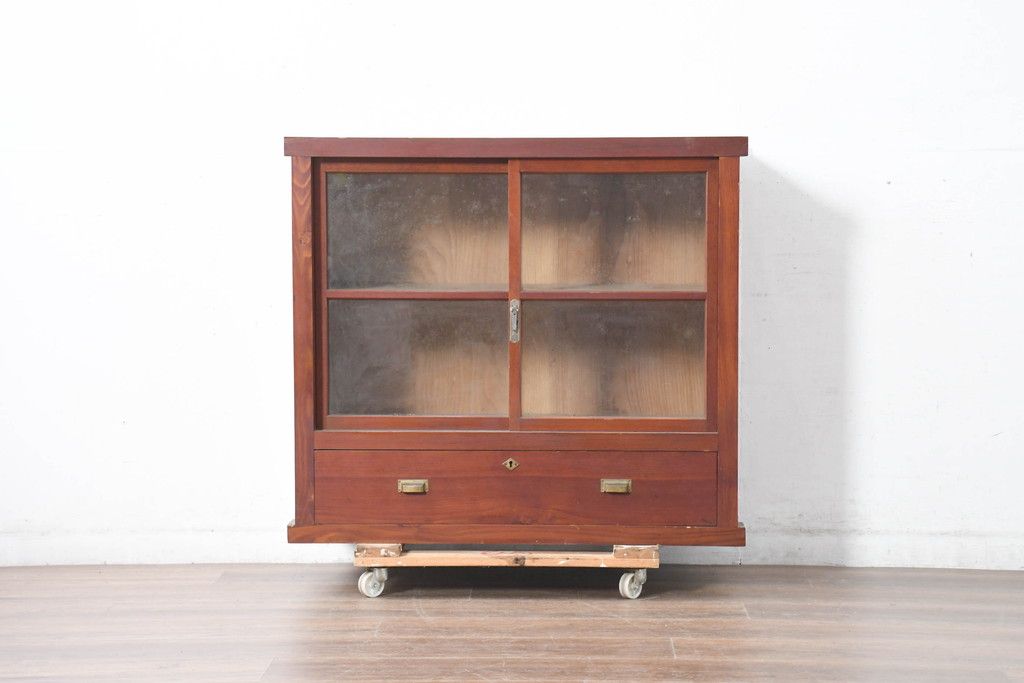 店舗什器 > 和製アンティーク 暮らしに溶け込む昭和レトロな温もりあふれるガラス戸棚(食器棚、収納棚、キャビネット、本箱、書棚、陳列棚、飾り棚、ディスプレイ棚、店舗什器)(R-084460)
