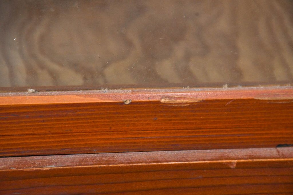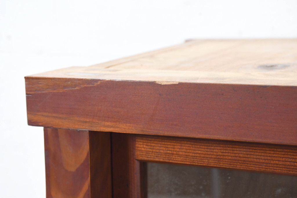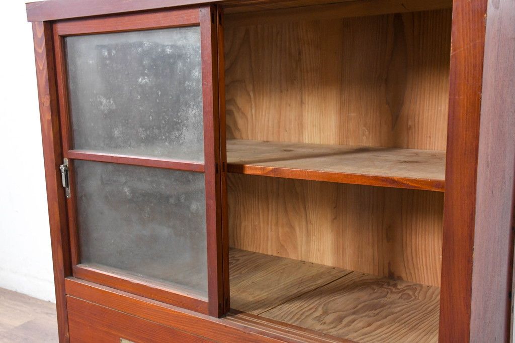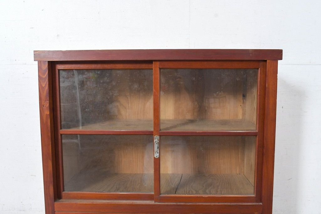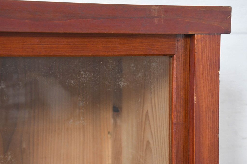 キャビネット・戸棚> 食器棚・カップボード > 和製アンティーク 暮らしに溶け込む昭和レトロな温もりあふれるガラス戸棚(食器棚、収納棚、キャビネット、本箱、書棚、陳列棚、飾り棚、ディスプレイ棚、店舗什器)(R-084460)