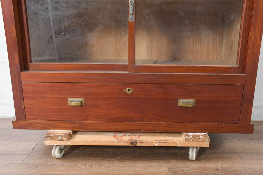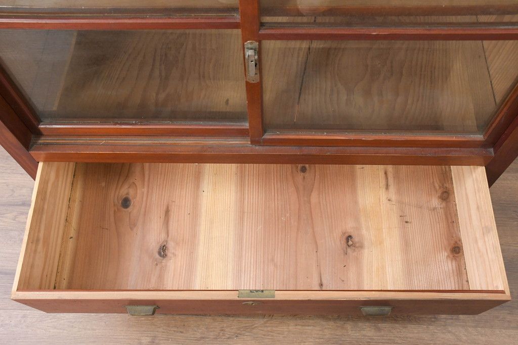 和製アンティーク 暮らしに溶け込む昭和レトロな温もりあふれるガラス戸棚(食器棚、収納棚、キャビネット、本箱、書棚、陳列棚、飾り棚、ディスプレイ棚、店舗什器)(R-084460)