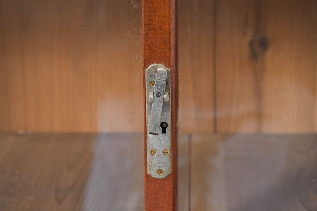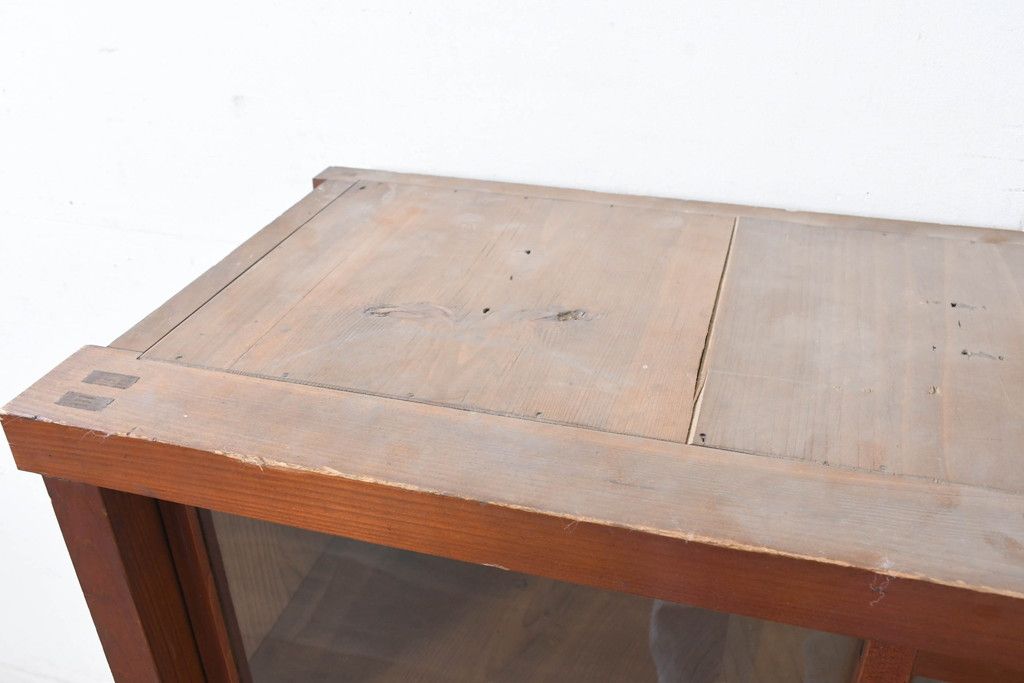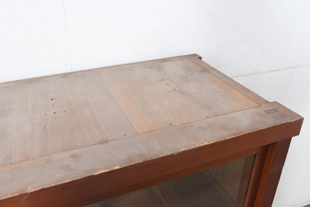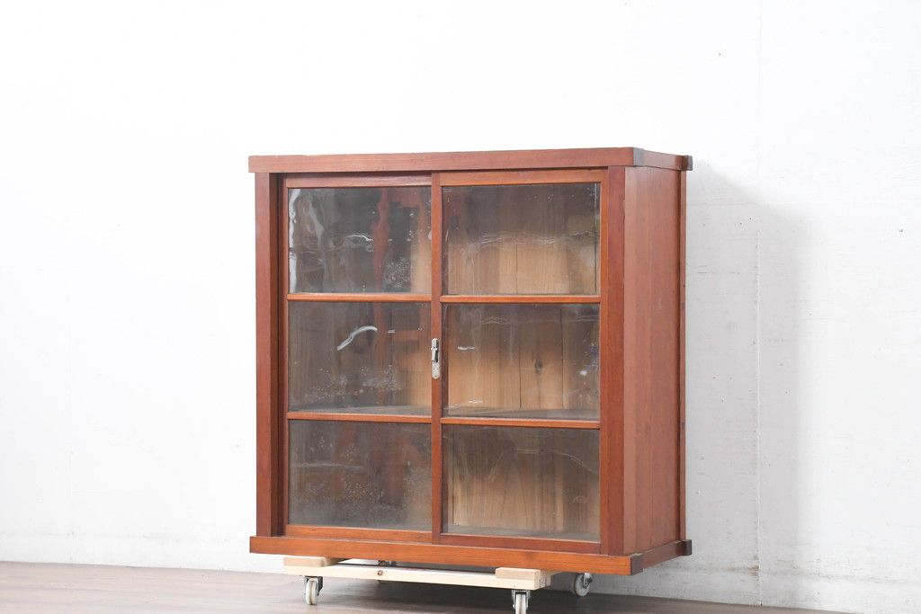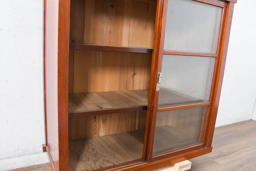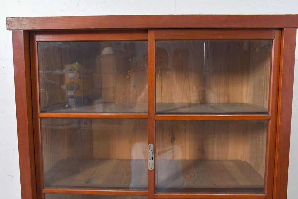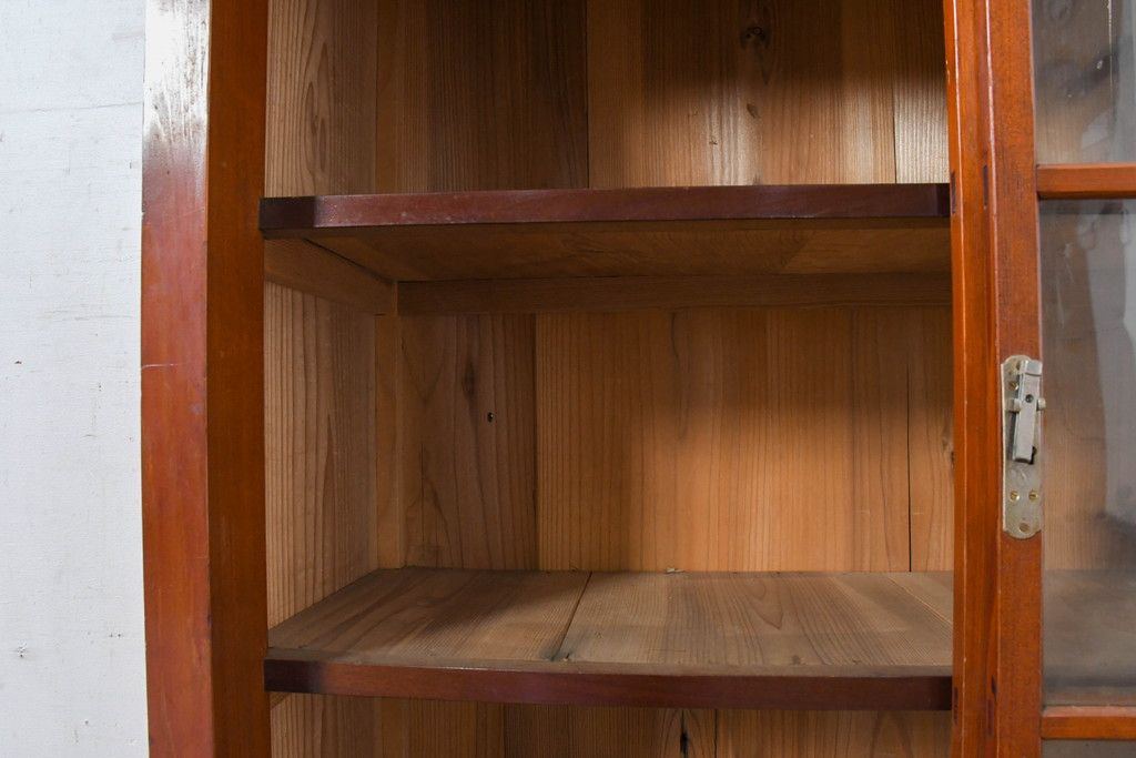 キャビネット・戸棚> 食器棚・カップボード > 和製アンティーク 暮らしに溶け込む昭和レトロな温もりあふれるガラス戸棚(食器棚、収納棚、キャビネット、本箱、書棚、陳列棚、飾り棚、ディスプレイ棚、店舗什器)(R-084462)