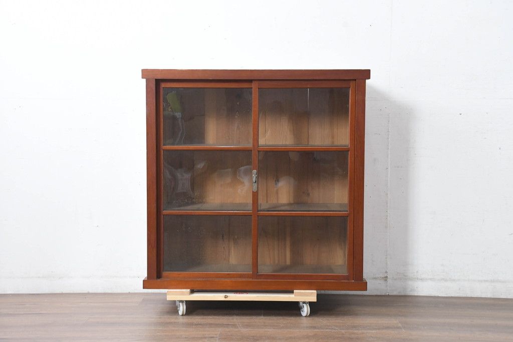 和製アンティーク 暮らしに溶け込む昭和レトロな温もりあふれるガラス戸棚(食器棚、収納棚、キャビネット、本箱、書棚、陳列棚、飾り棚、ディスプレイ棚、店舗什器)(R-084462)