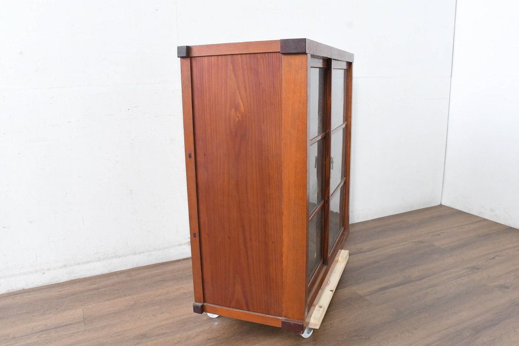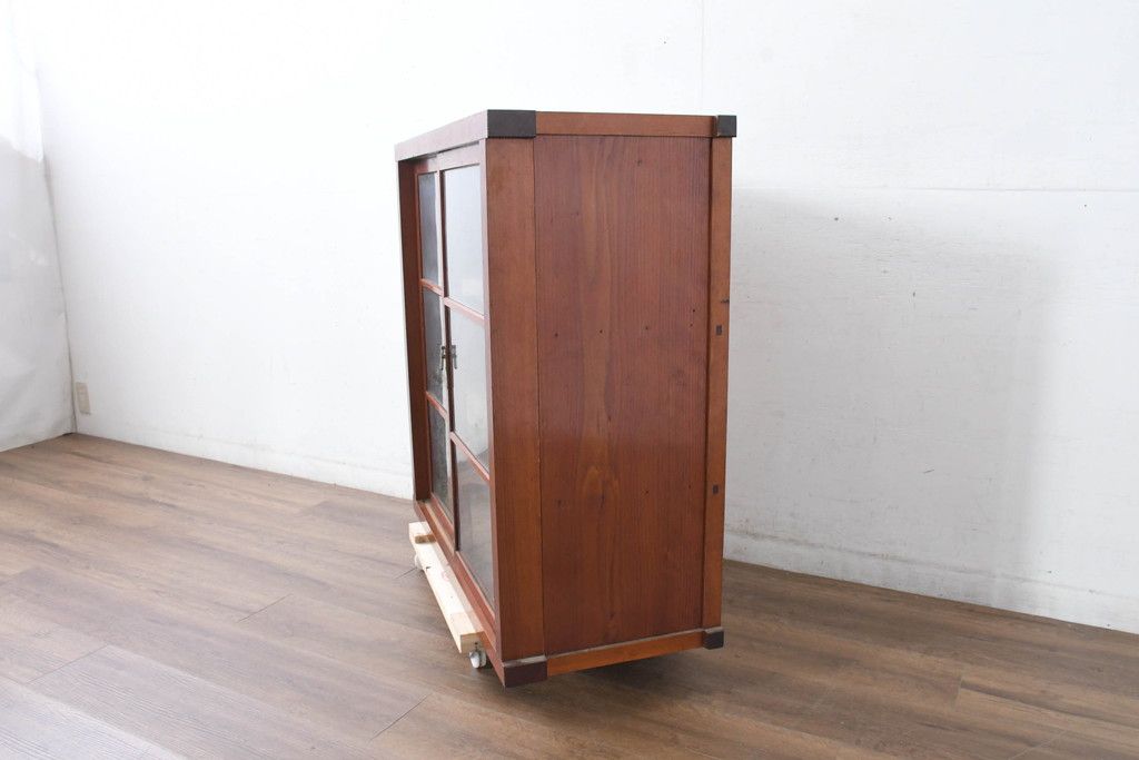 店舗什器 > 和製アンティーク 暮らしに溶け込む昭和レトロな温もりあふれるガラス戸棚(食器棚、収納棚、キャビネット、本箱、書棚、陳列棚、飾り棚、ディスプレイ棚、店舗什器)(R-084462)