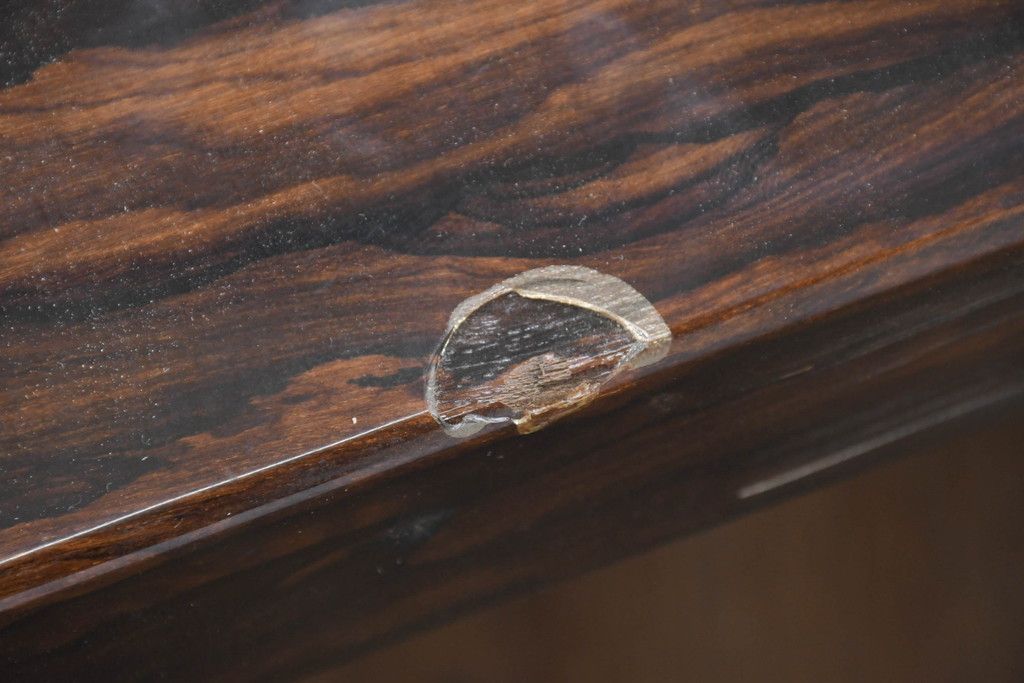 テーブル> センターテーブル・ローテーブル > 和製ビンテージ 美品 激レア!! 希少 シャム柿(ジリコテ)材 無垢材 唯一無二の存在感を放つ美しい杢目が印象的な座卓(テーブルトップ、ローテーブル、センターテーブル、リビングテーブル、ヴィンテージ)(R-084468)