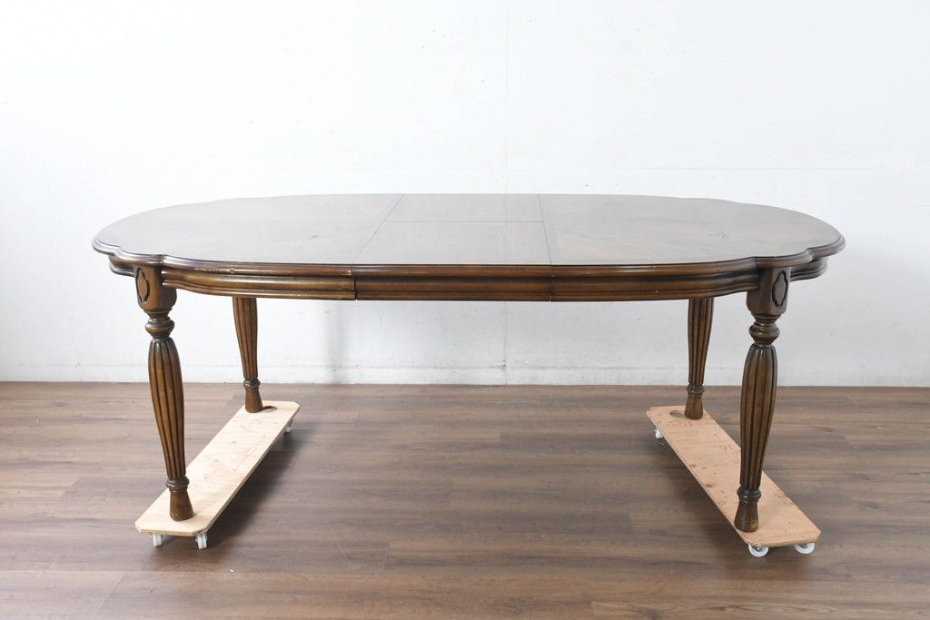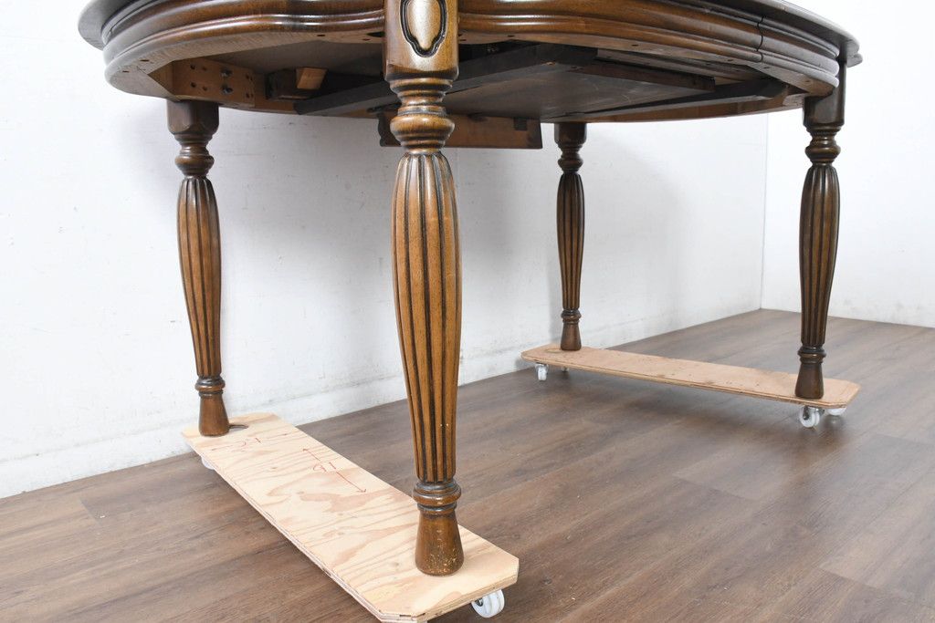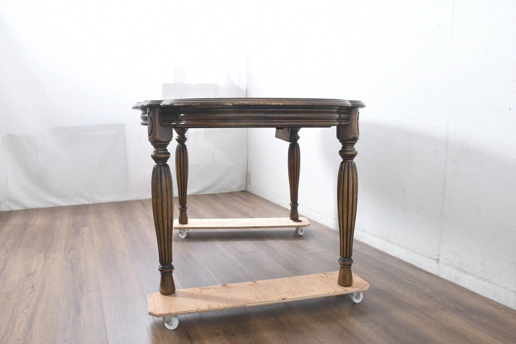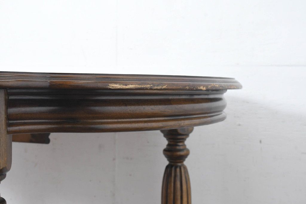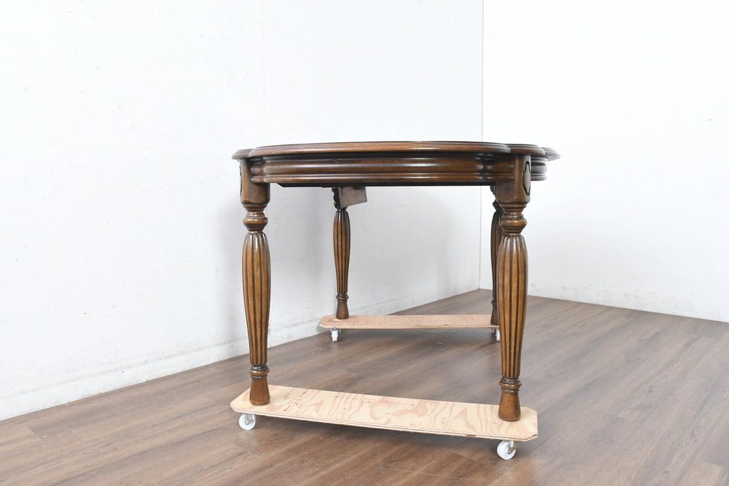 ラフジュ工房> テーブル> 丸テーブル > 中古 美品 クラッシックデザイン 天板のパーケットリー模様が映えるエクステンションダイニングテーブル (R-084472)