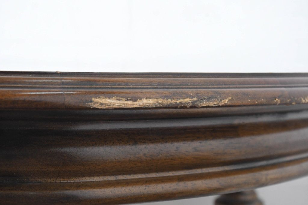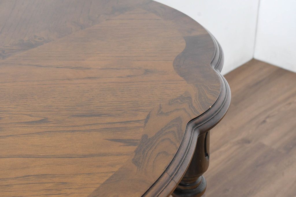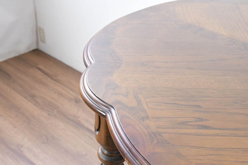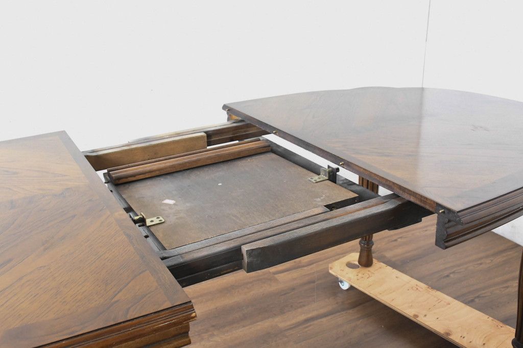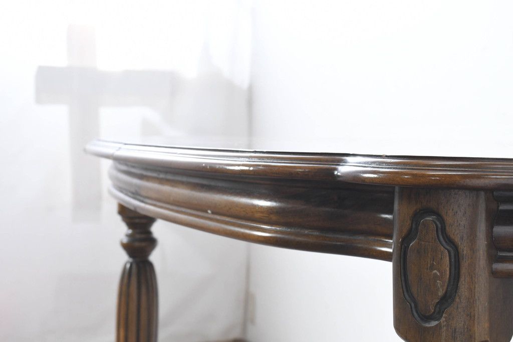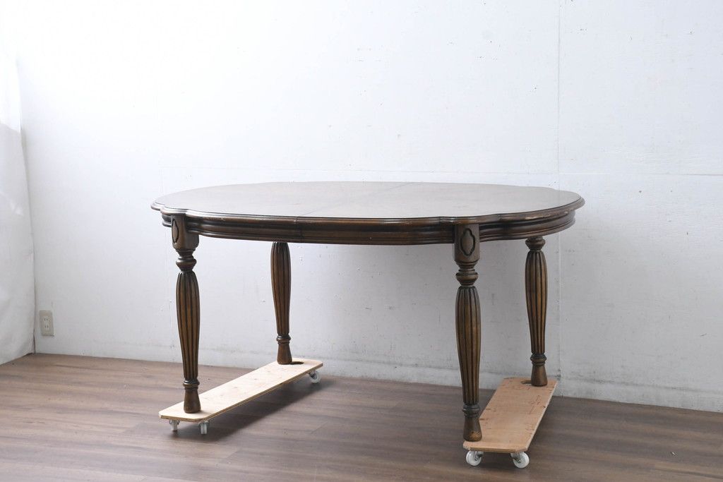 ラフジュ工房> テーブル> 丸テーブル > 中古 美品 クラッシックデザイン 天板のパーケットリー模様が映えるエクステンションダイニングテーブル (R-084472)