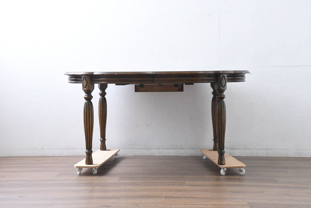 ラフジュ工房> テーブル> エクステンションテーブル > 中古 美品 クラッシックデザイン 天板のパーケットリー模様が映えるエクステンションダイニングテーブル (R-084472)