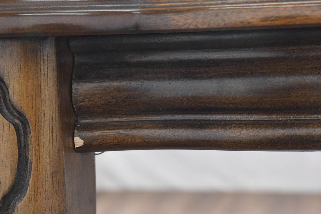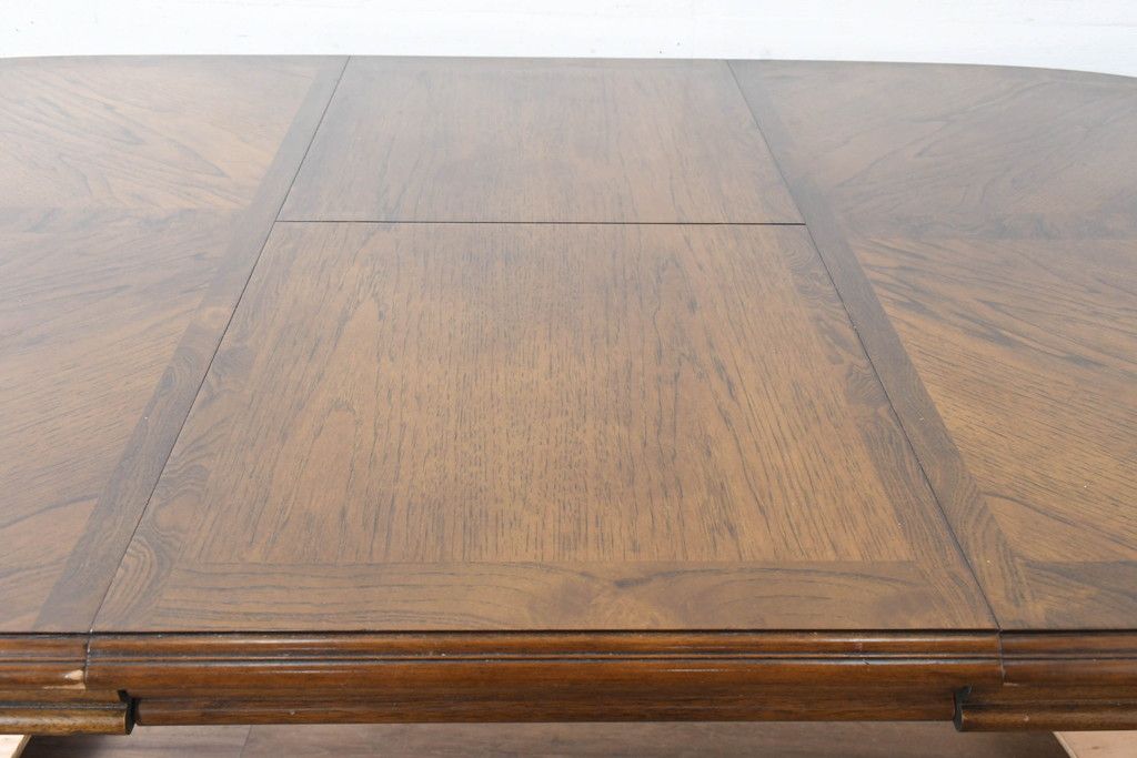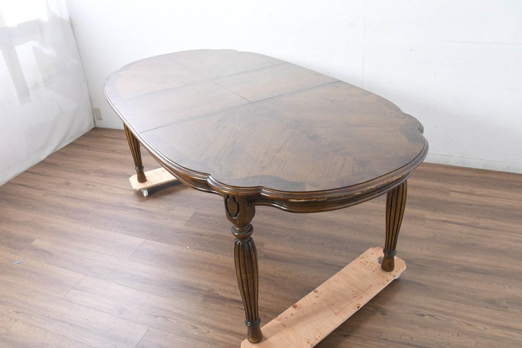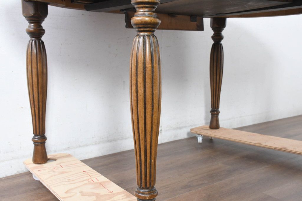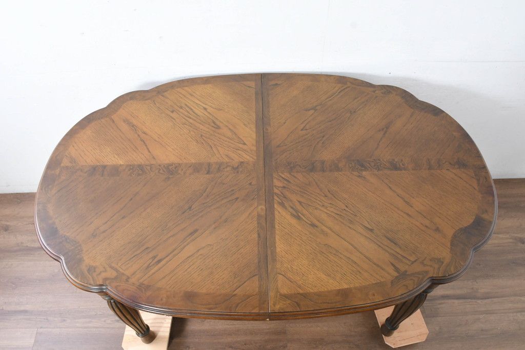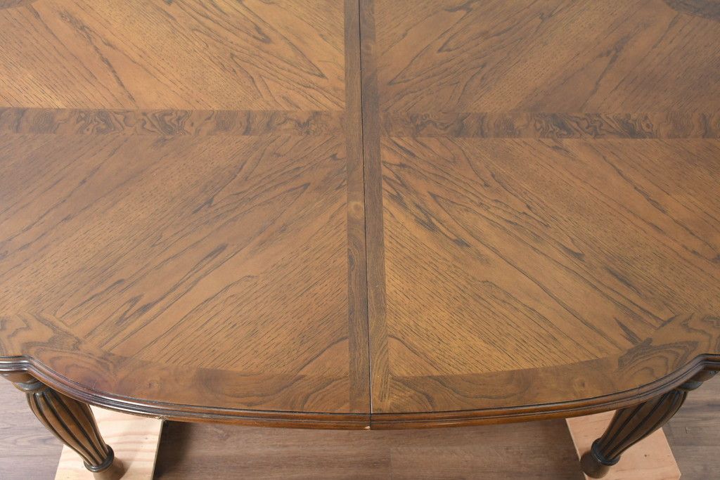 ラフジュ工房> テーブル> 6人用ダイニングテーブル > 中古 美品 クラッシックデザイン 天板のパーケットリー模様が映えるエクステンションダイニングテーブル (R-084472)