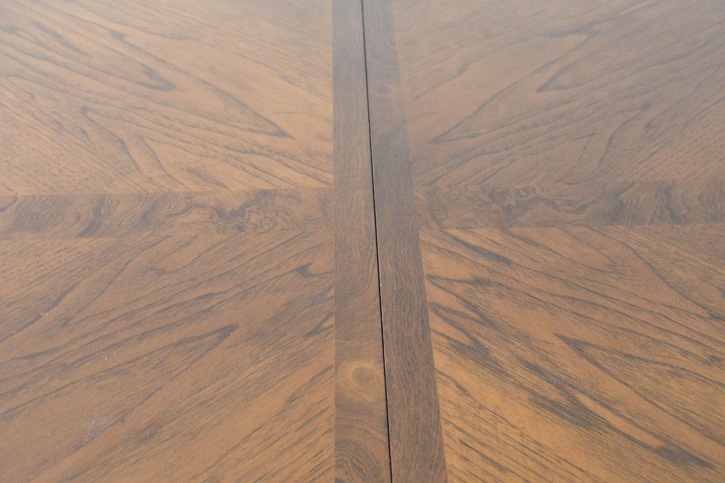 ラフジュ工房> テーブル> 4人用ダイニングテーブル > 中古 美品 クラッシックデザイン 天板のパーケットリー模様が映えるエクステンションダイニングテーブル (R-084472)