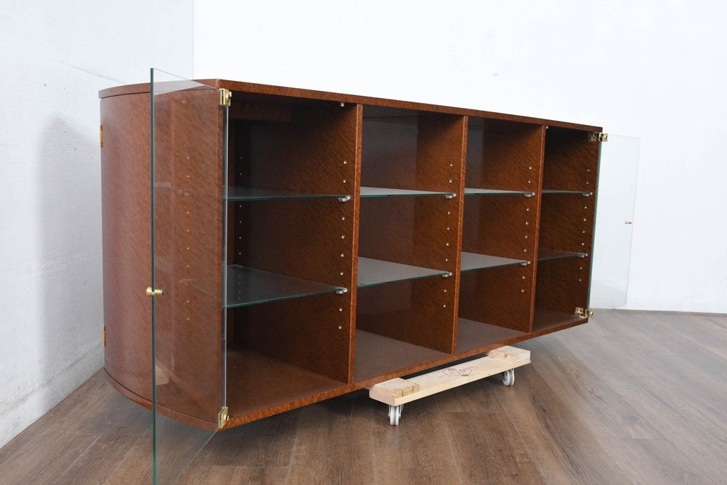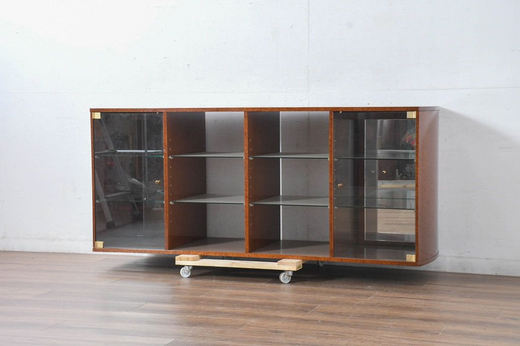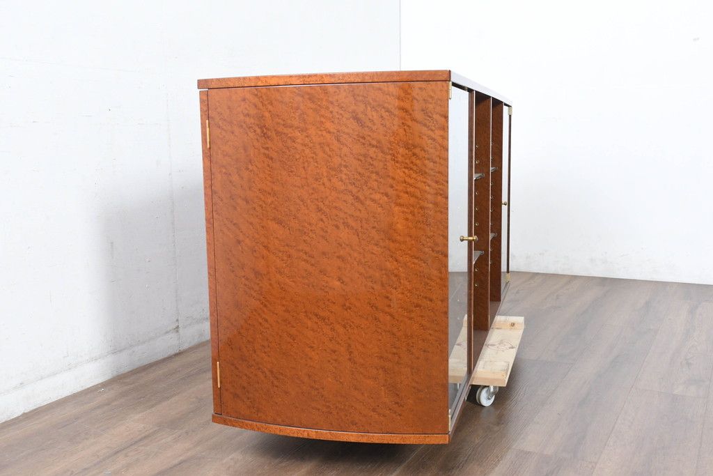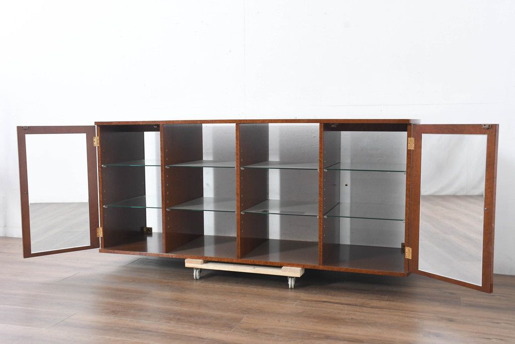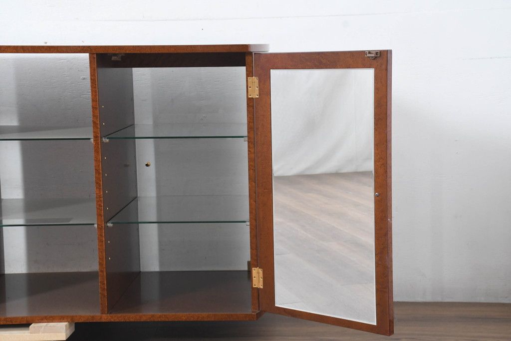 中古 美品 松創(MATSUSO・マツソウ) 特注 バーズアイメイプル 両面使いできる便利なサイドボード(収納棚、戸棚、食器棚、カップボード、ミラーバック、飾り棚、サイドキャビネット、ディスプレイケース、コレクションケース、オープンラック)(定価約100万円)(R-084480)