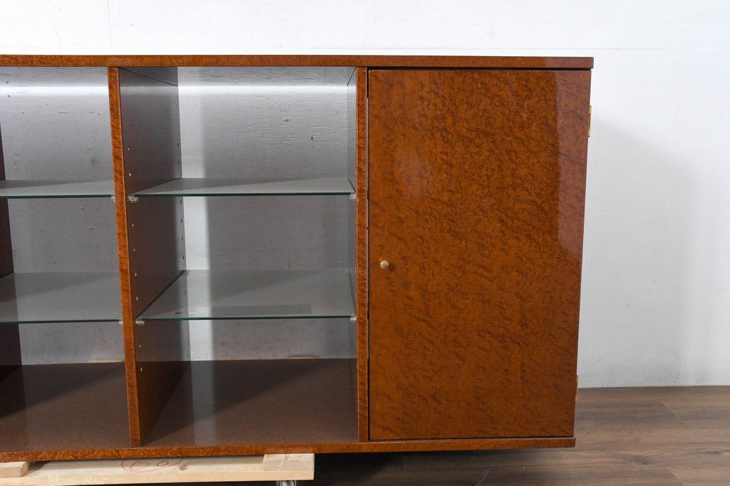 ラフジュ工房> キャビネット・戸棚> サイドボード > 中古 美品 松創(MATSUSO・マツソウ) 特注 バーズアイメイプル 両面使いできる便利なサイドボード(収納棚、戸棚、食器棚、カップボード、ミラーバック、飾り棚、サイドキャビネット、ディスプレイケース、コレクションケース、オープンラック)(定価約100万円)(R-084480)