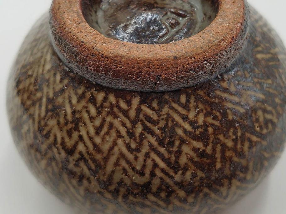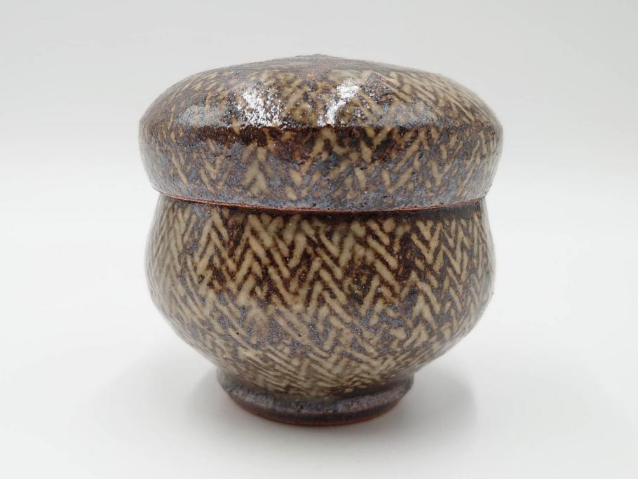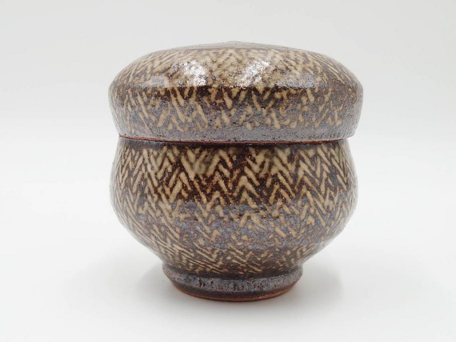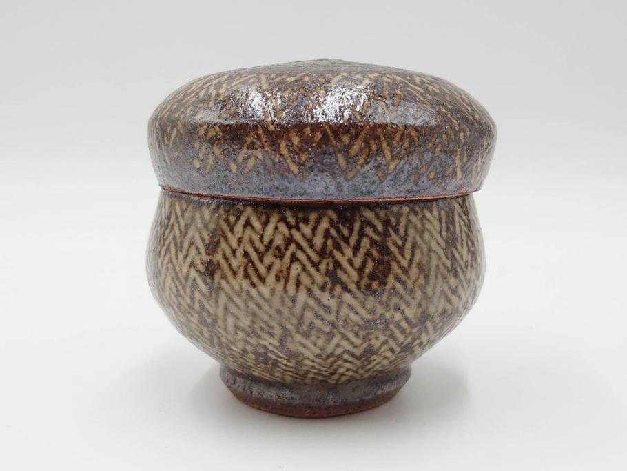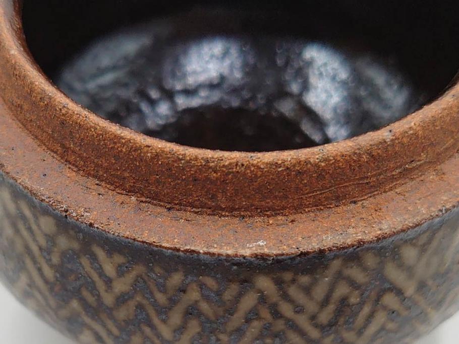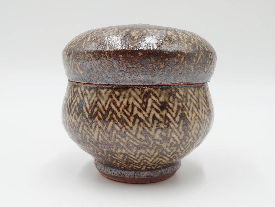 人間国宝 島岡達三 益子焼 象嵌 2.8寸 お部屋に静謐な美しさをもたらす盒子(R-084490)