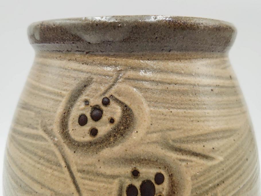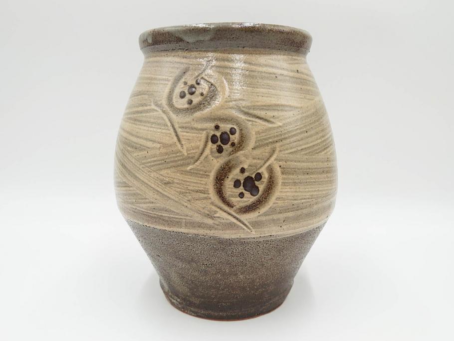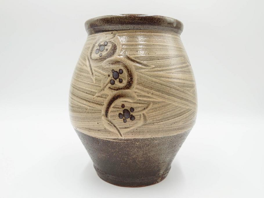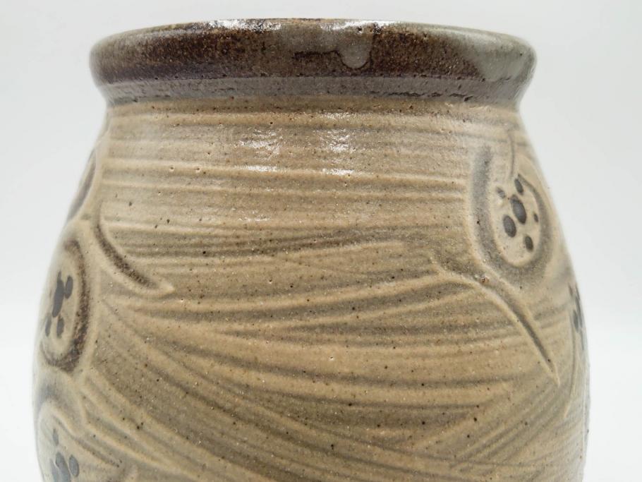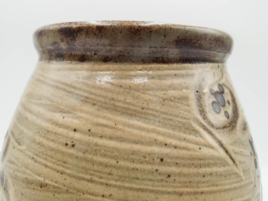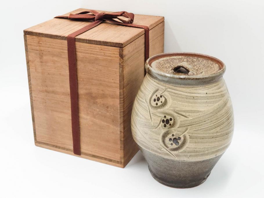 ラフジュ工房> 骨董・美術品> 骨董-陶磁器 > 人間国宝 島岡達三 益子焼 刷毛目 梅文 空間に格調高い趣を演出する水指(R-084492)