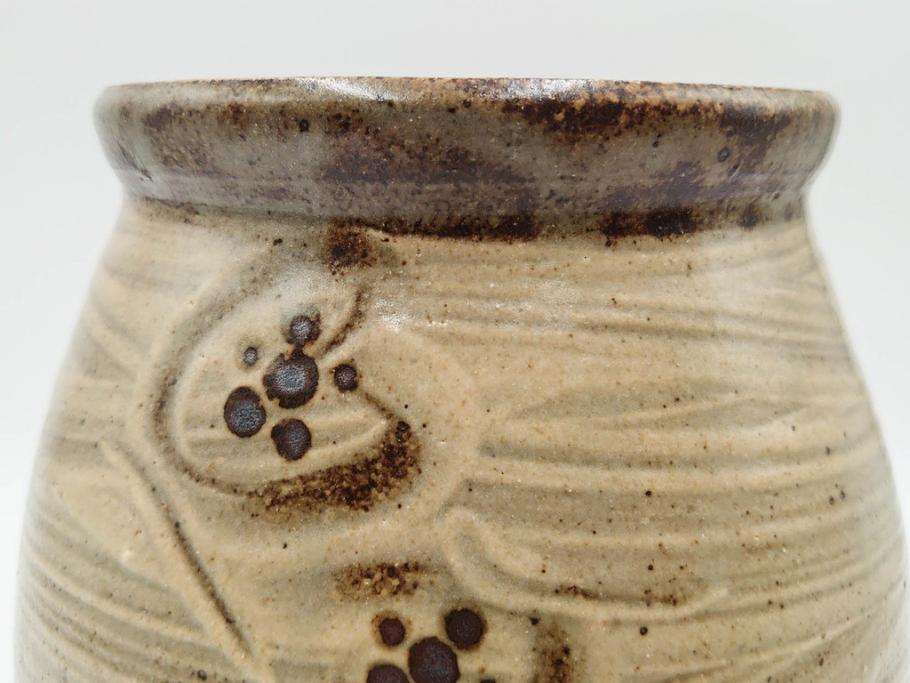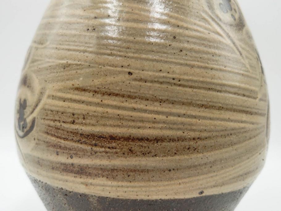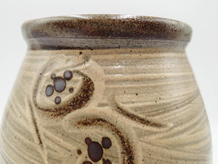 人間国宝 島岡達三 益子焼 刷毛目 梅文 空間に格調高い趣を演出する水指(R-084492)