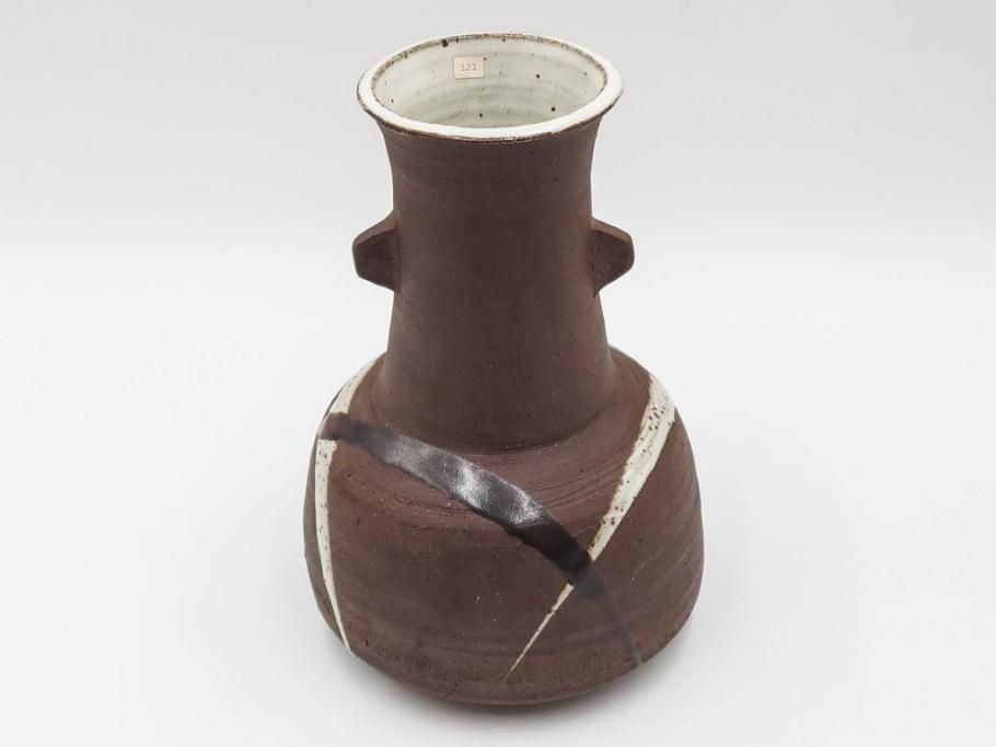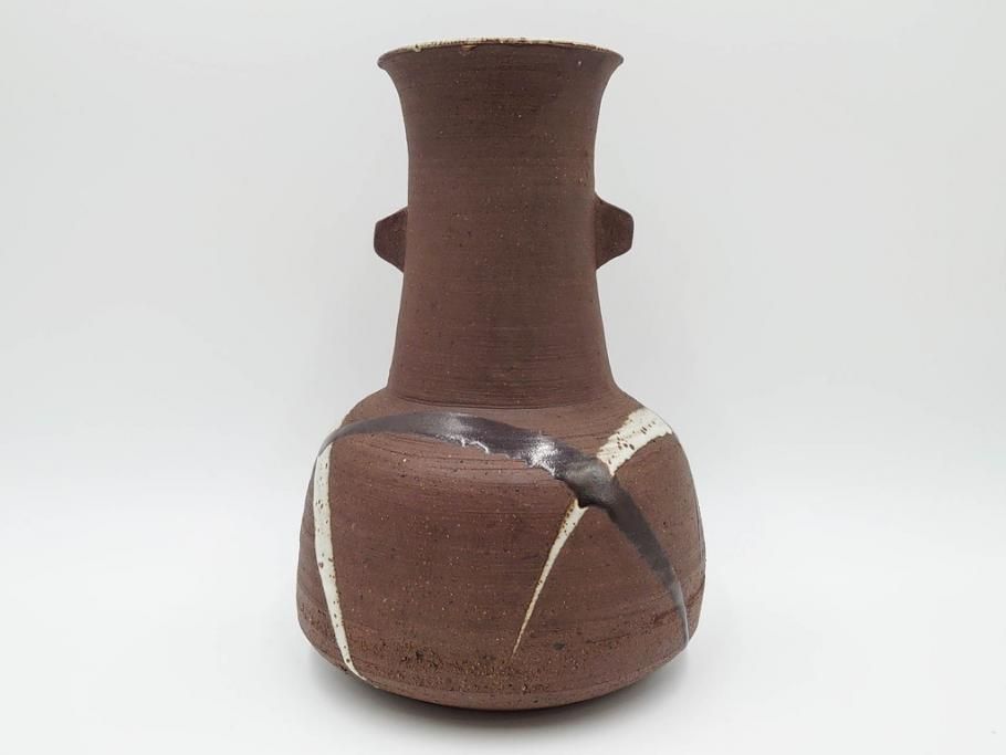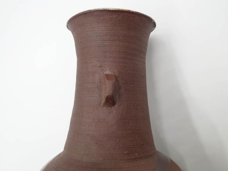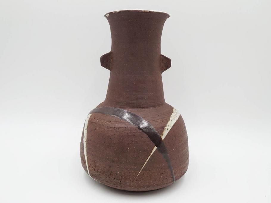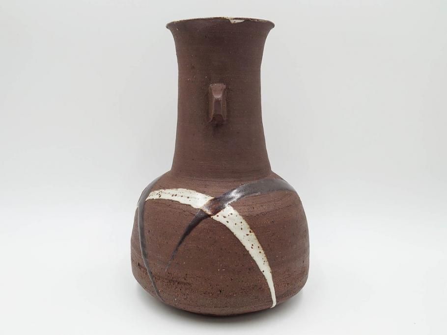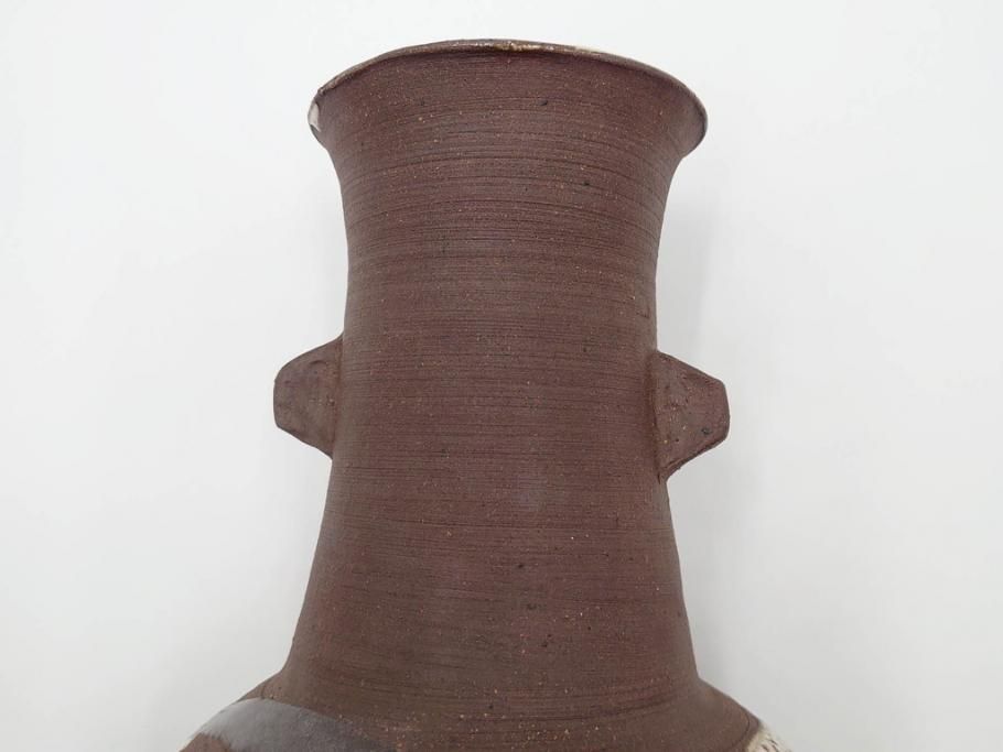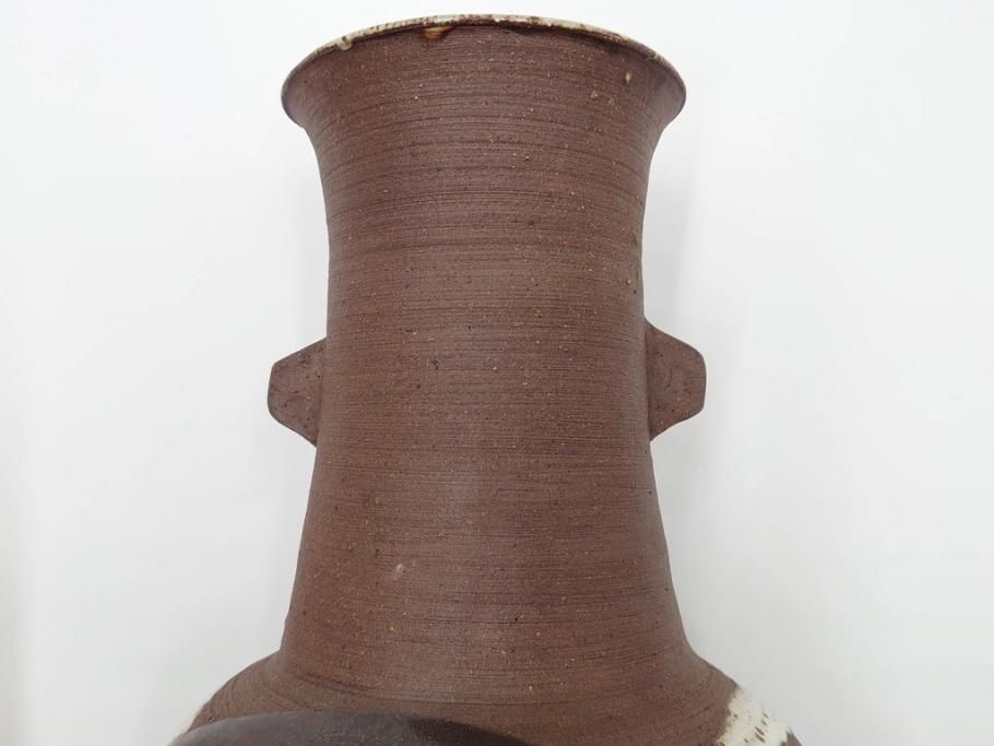 ラフジュ工房> 雑貨> ガラス瓶・花瓶 > 1981年作 ジャネット・リーチ(Janet Leach) 耳付花瓶 赤地白流釉 バーナード・リーチ夫人 高さ 約26cm 落ち着いた色合いとモダンなデザインが上質な雰囲気を演出する花瓶(J・L、花生、花入、花器、フラワーベース)(R-084493)