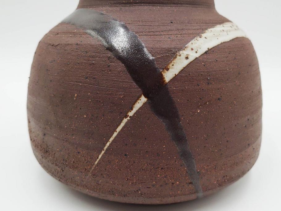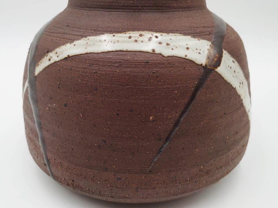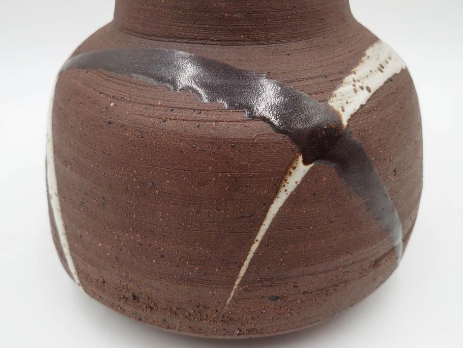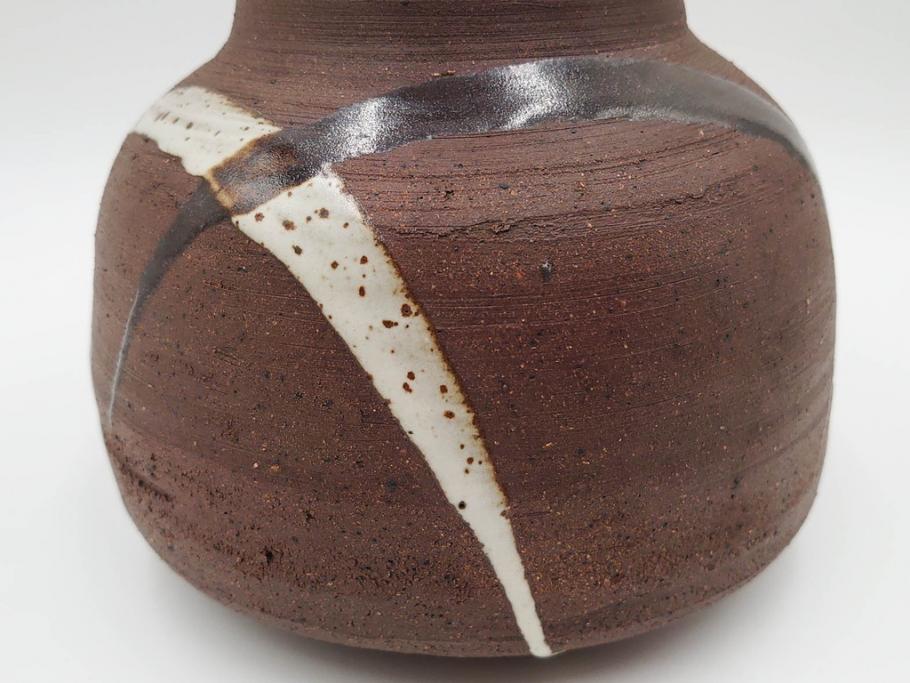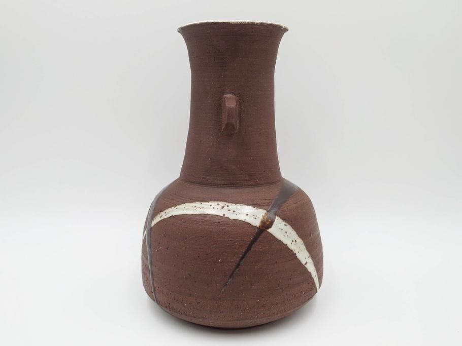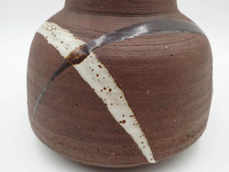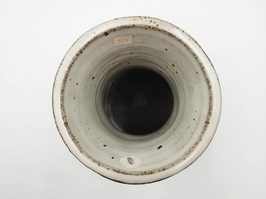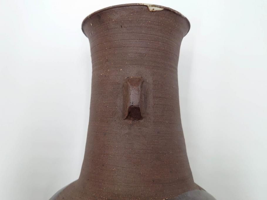 ラフジュ工房> 雑貨> ガラス瓶・花瓶 > 1981年作 ジャネット・リーチ(Janet Leach) 耳付花瓶 赤地白流釉 バーナード・リーチ夫人 高さ 約26cm 落ち着いた色合いとモダンなデザインが上質な雰囲気を演出する花瓶(J・L、花生、花入、花器、フラワーベース)(R-084493)