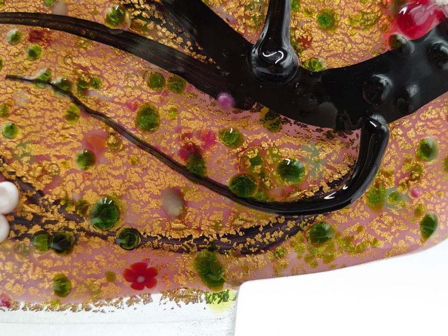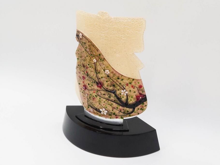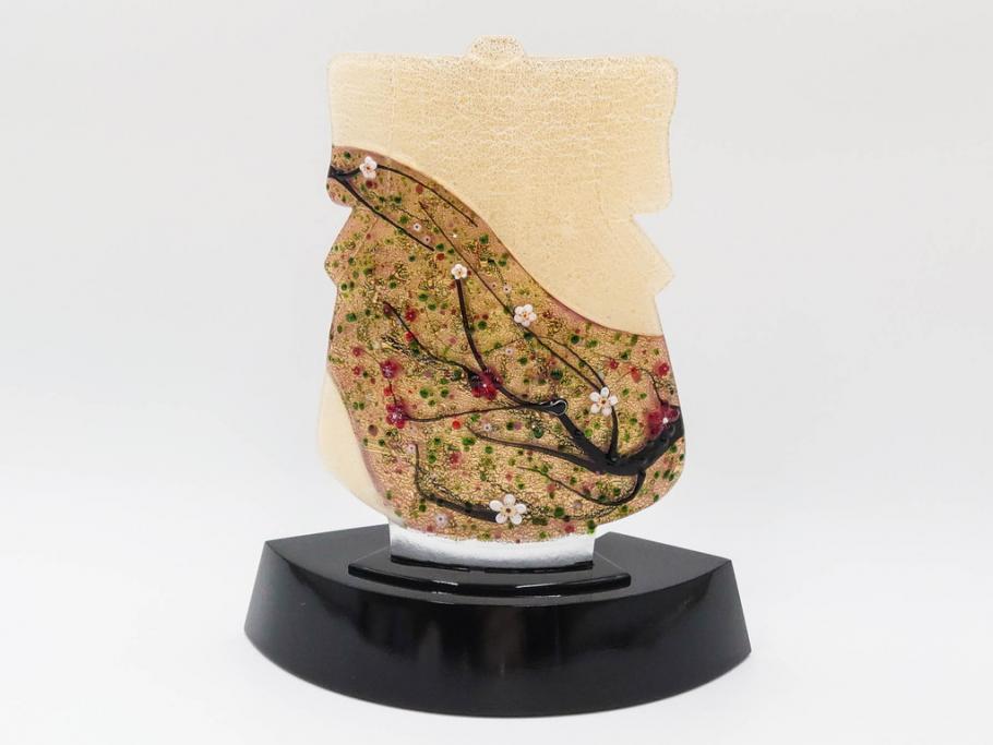雑貨> オブジェ > 黒木国昭 金彩象嵌 光琳 着物 ガラス 高さ 約31cm 華やかで可愛らしい置物 (R-084497)