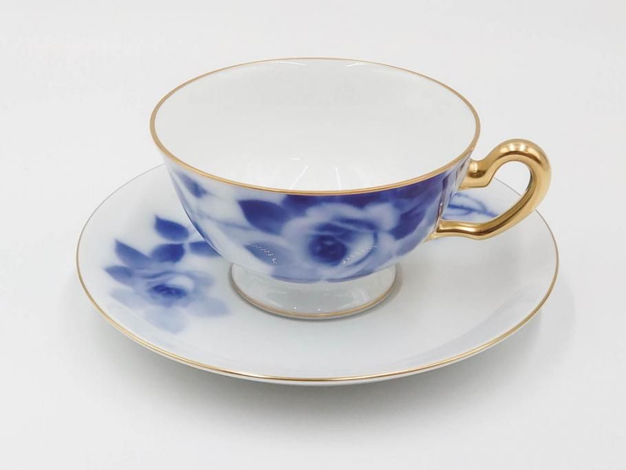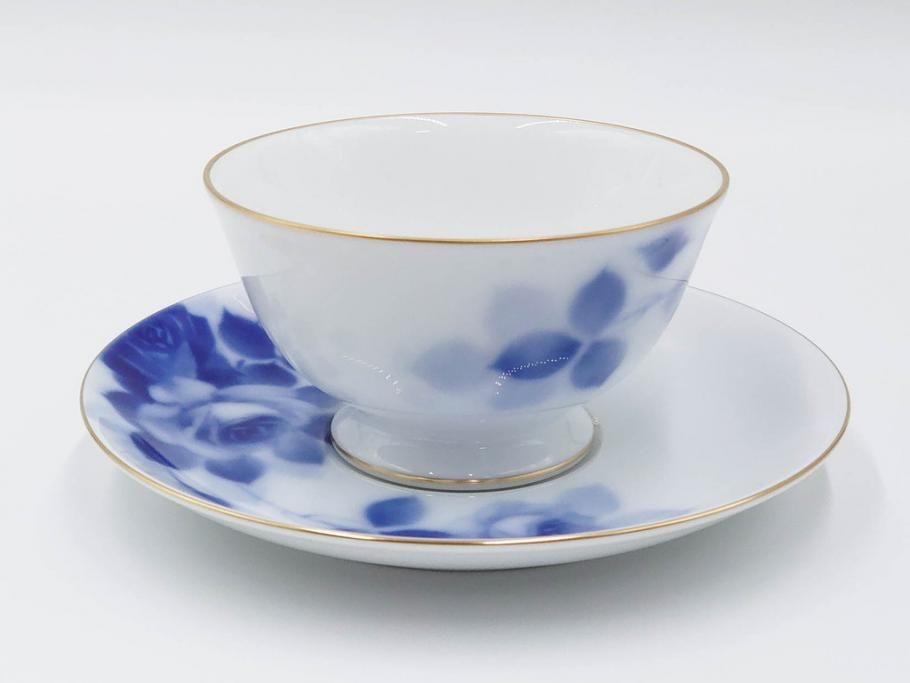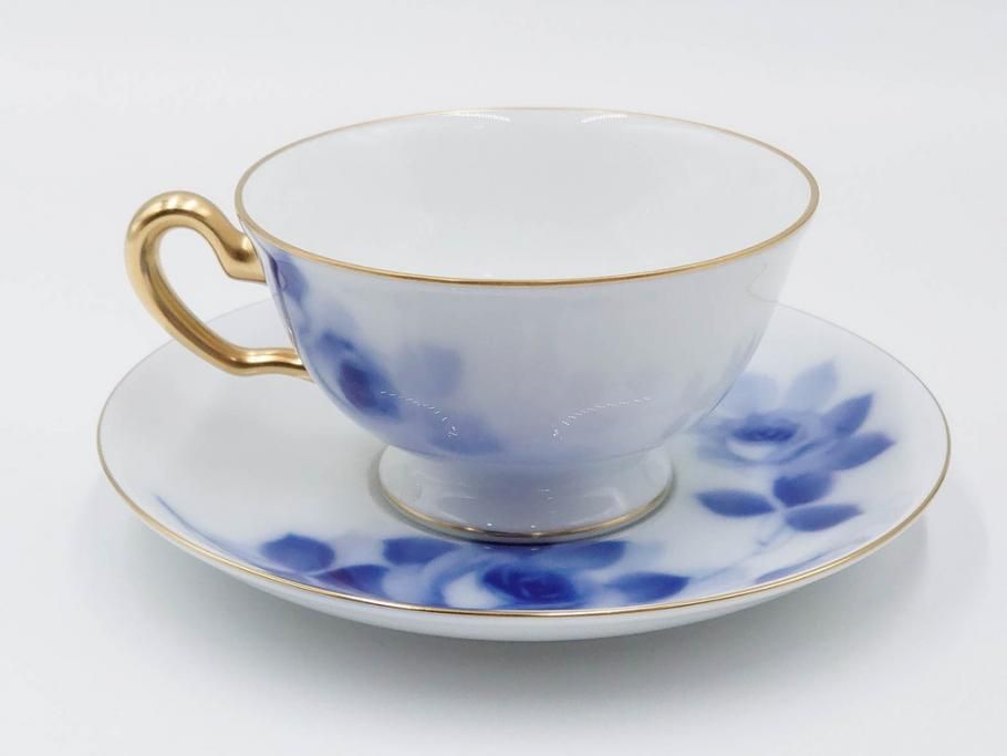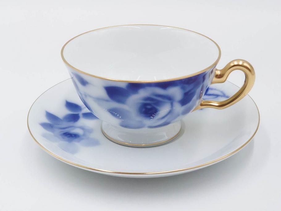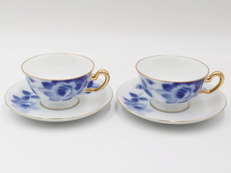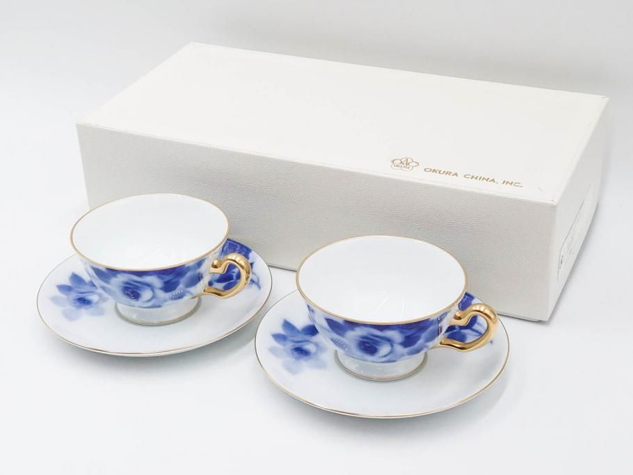大倉陶園(OKURA、OAC) ブルーローズ 上品な雰囲気のティーカップ&ソーサー2客セット(R-084502)